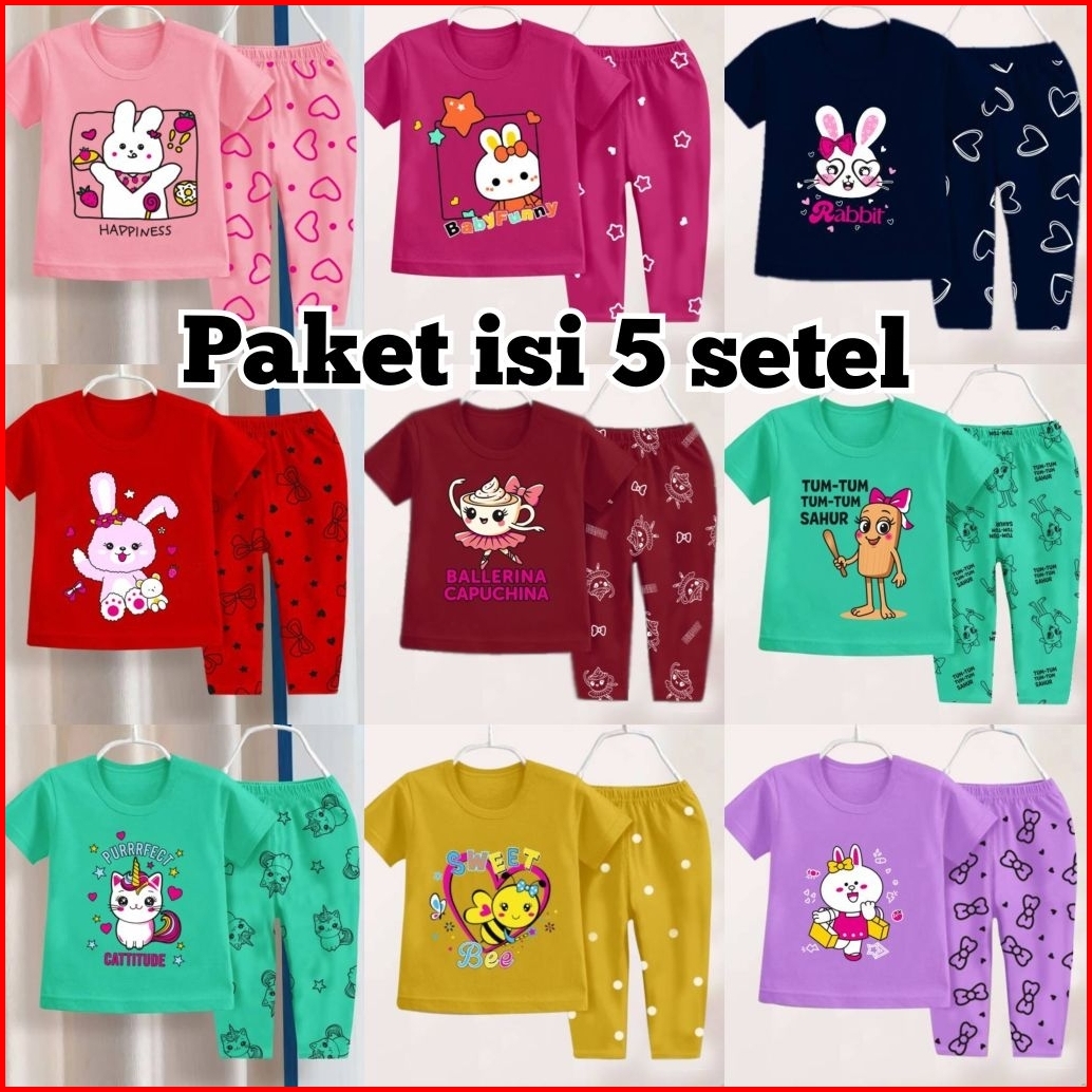 Paket Isi 5 Stel Setelan Celana Panjang Setelan Anak Cewek Ballerina Capuchina Tung Tung Sahur
