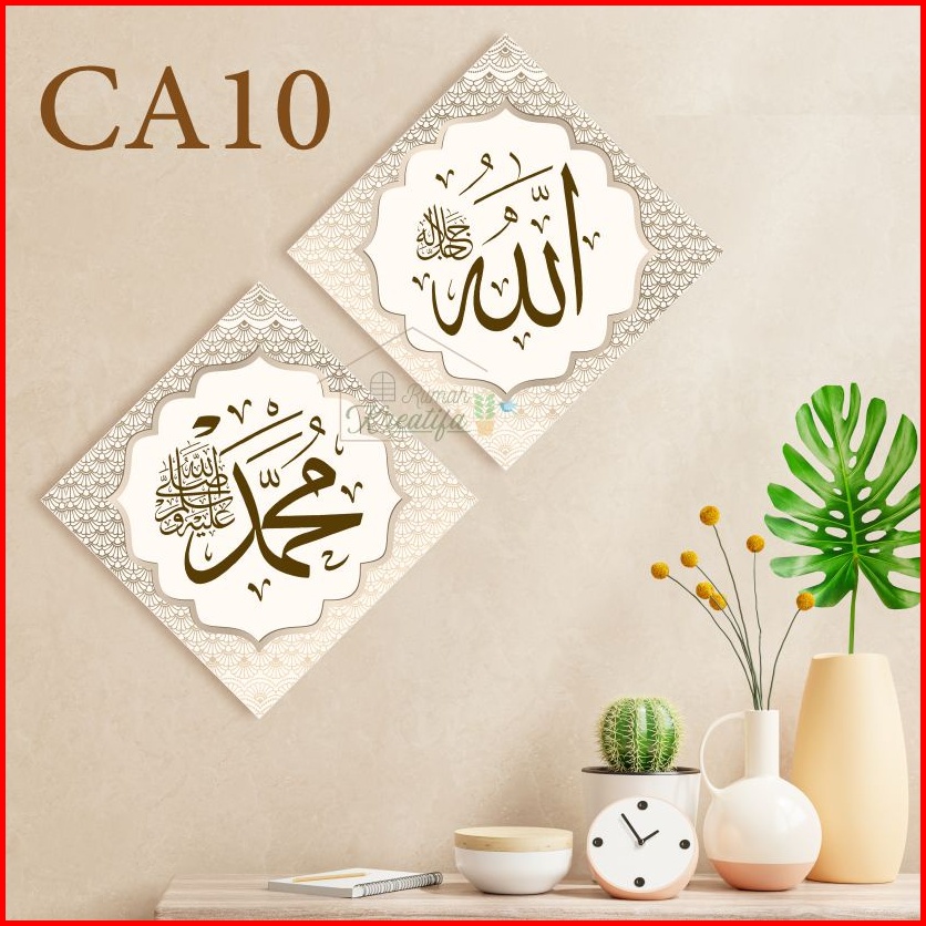 Paket Set Isi 2 Hiasan Dinding Kaligrafi Allah Muhammad Wall Decor Pajangan Kamar Ruang Tamu