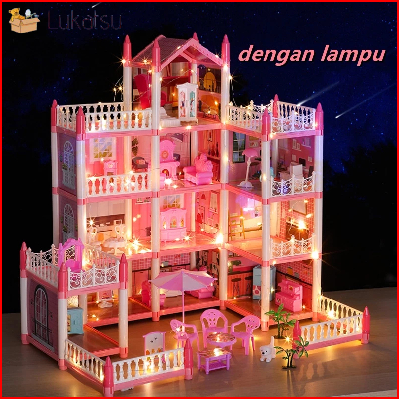 Mainan Rumah Boneka Mainan Castle Boneka Set Box Rumah Princess Rumah Boneka Villa Princess Castle
