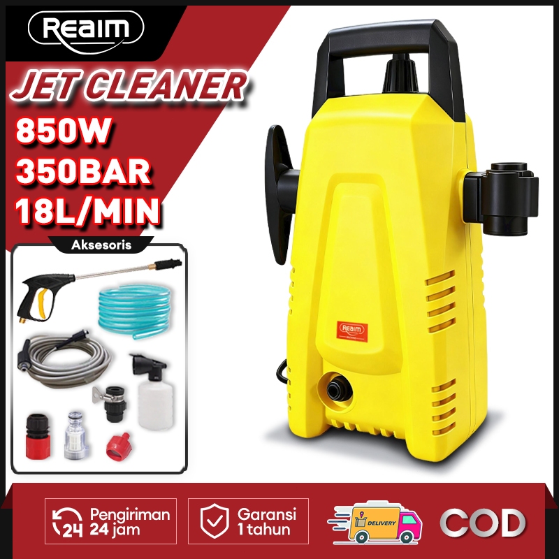 Reaim Jet Cleaner Kuning 800Watt 350Bar Mesin Cuci Motor Mesin Cuci Mobil Semprotan Cuci Motor Alat Cuci Motor