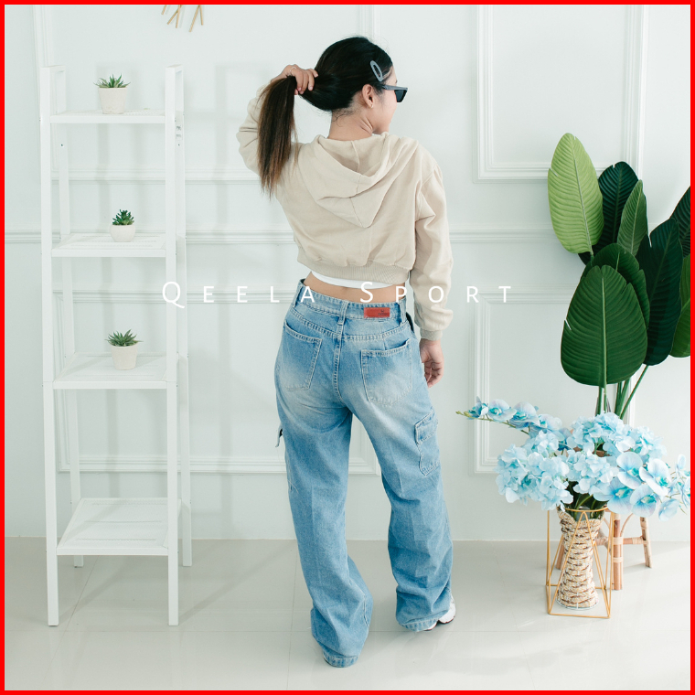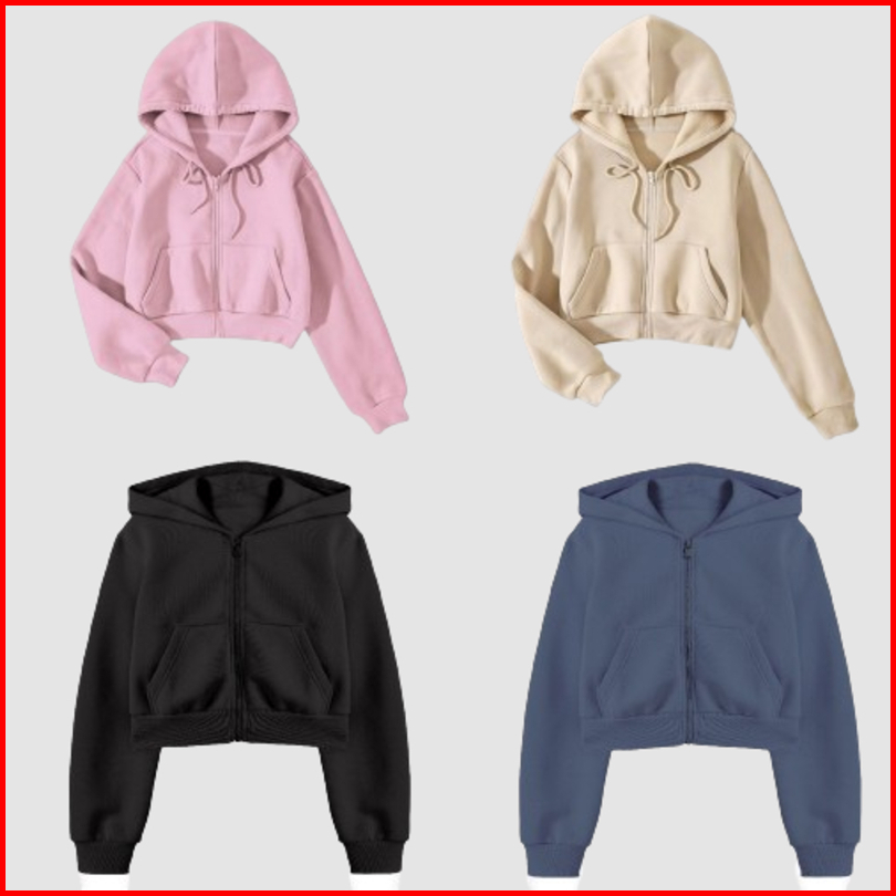 Qeelaofficial Hoodie Zipper Crop Jacket Sweater Creawneck Hoodie Wanita Jaket Wanita