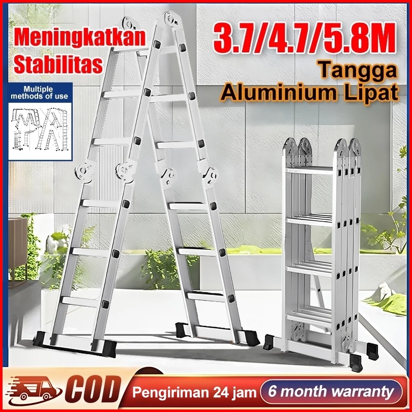 Tangga Aluminium Lipat Empat 3.7m 4.7m 5.8m Teleskopik Tangga Teleskopik Multifungsi Tangga Lipat Aluminium Termurah Tan