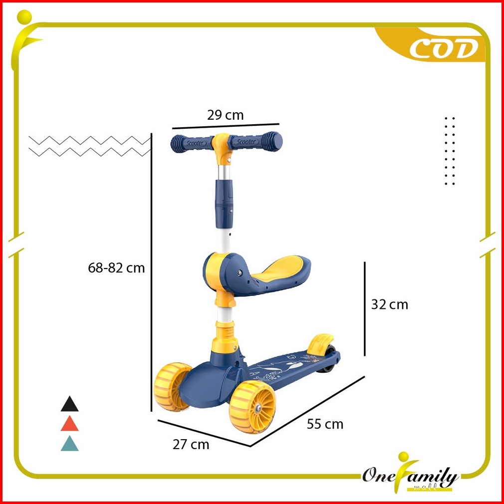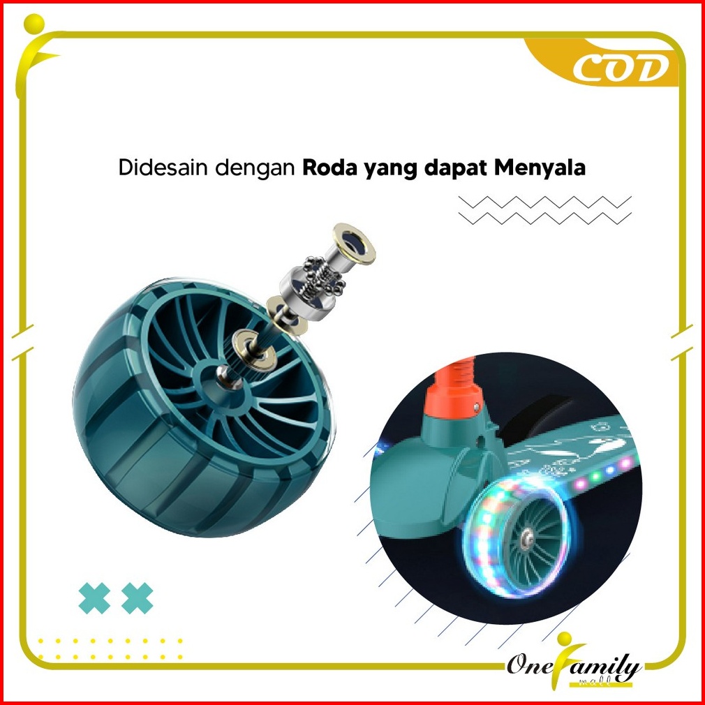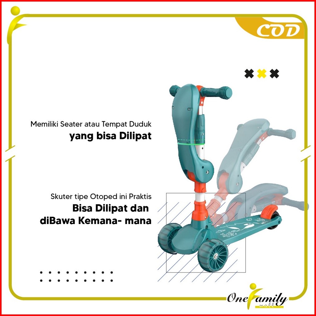 One-m290 Mainan Anak Skuter Otoped Sepeda Duduk 3 Roda 2in1 Ada Musik Lagu Lampu Scooter Anak Roda Nyala
