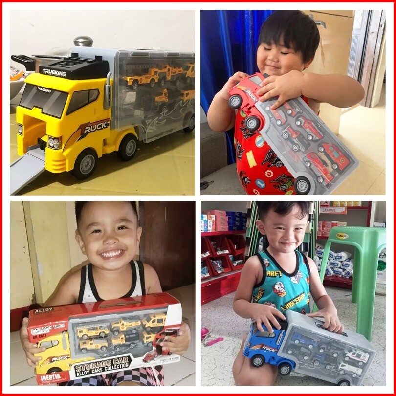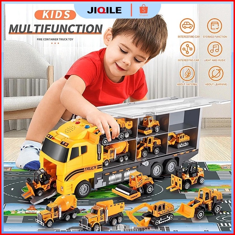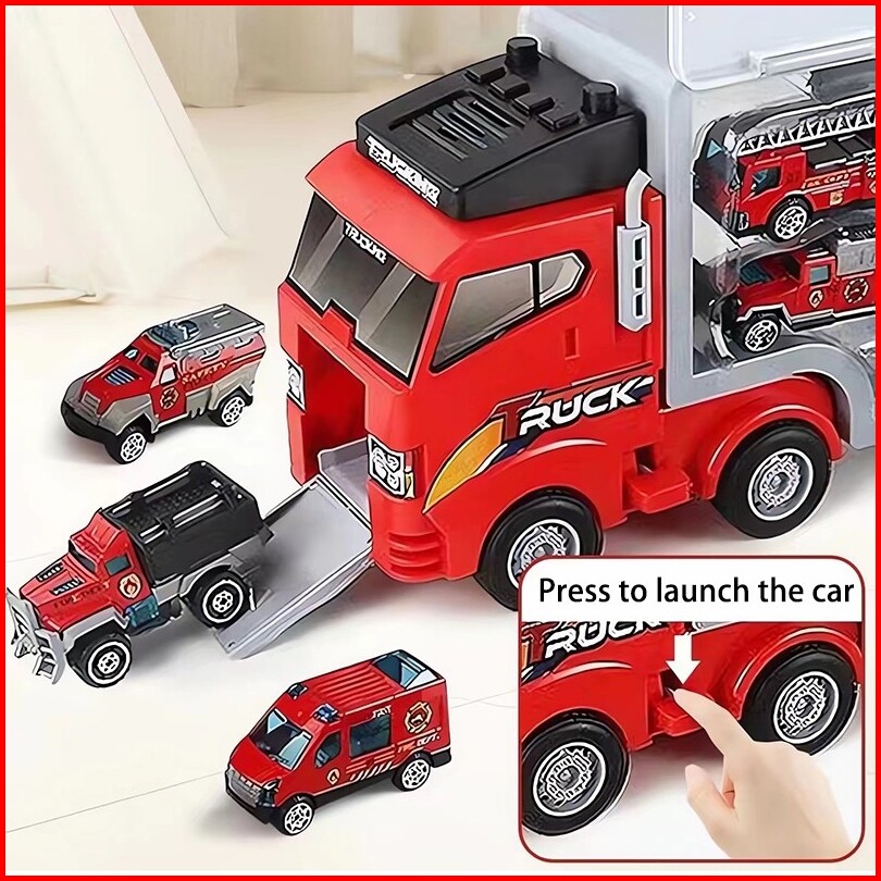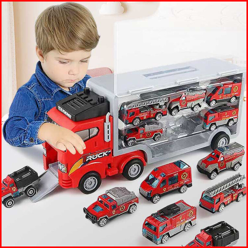 Jiqilefree 6 Mobil Carmainan Anak Mobil Storage Container Fire Truck Car Set Alloy Pullback Car Inertia Car