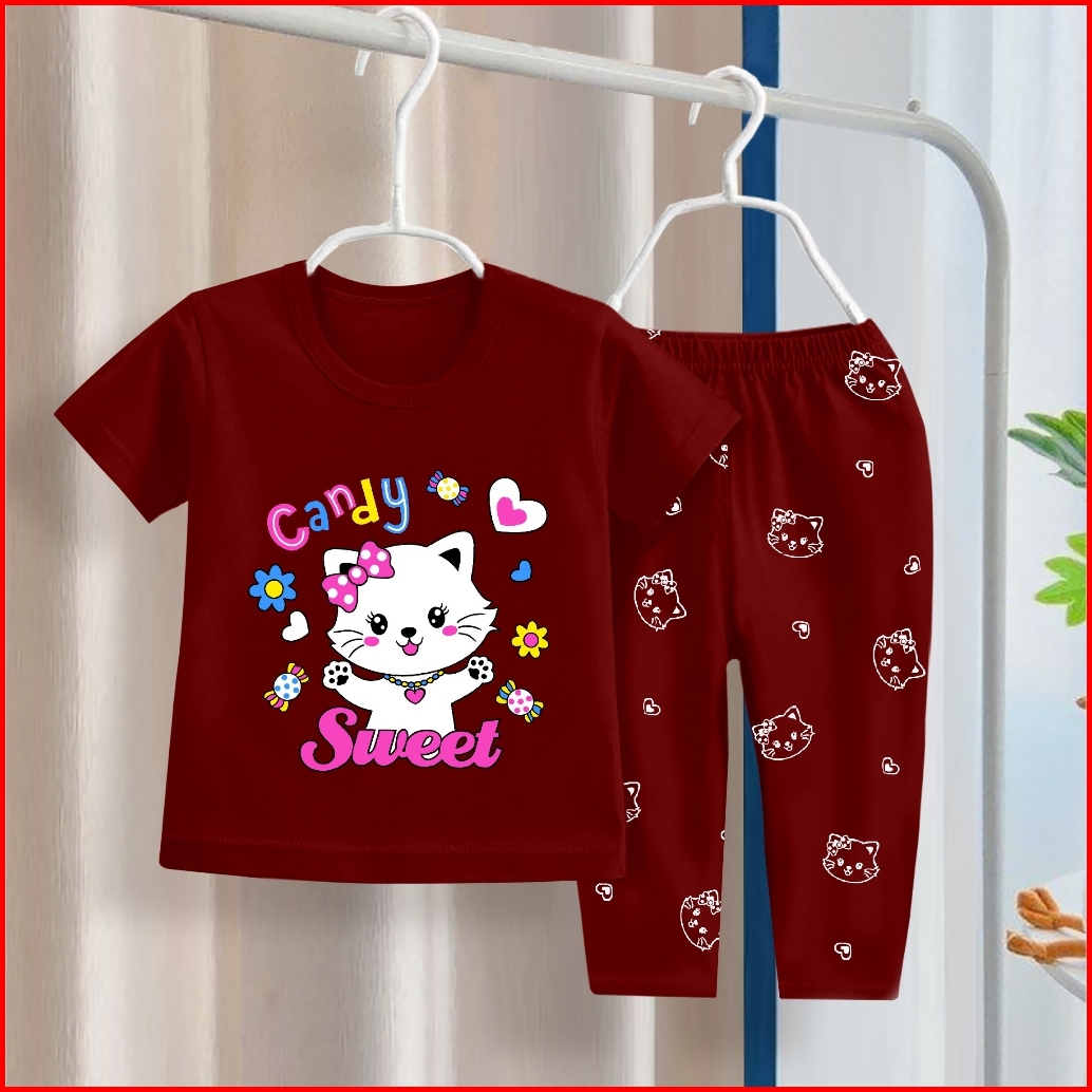 Ramora Setelan Baju Anak Perempuan Set Pakaian Anak Cewek Celana Panjang 1-6 Tahun