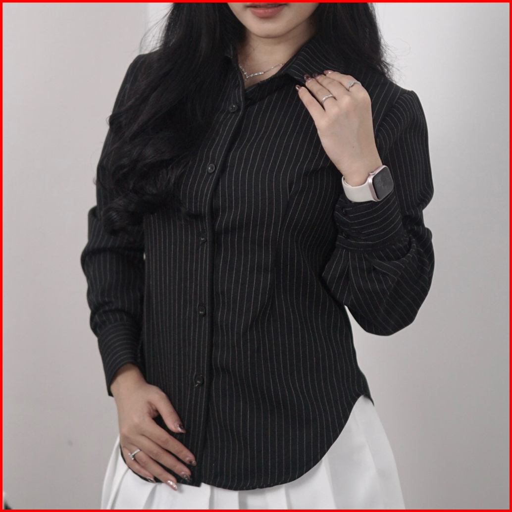 Selena Fitted Shirt - Kemeja Kerja Wanita Fit Garis Stripe Karet Premium