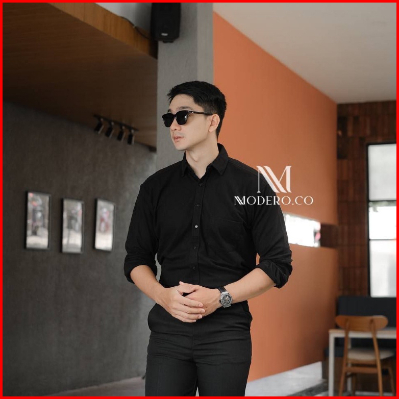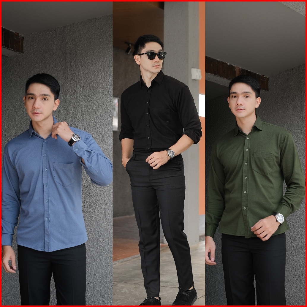 Kemeja Pria Basic Polos Lengan Panjang Cotton Pique