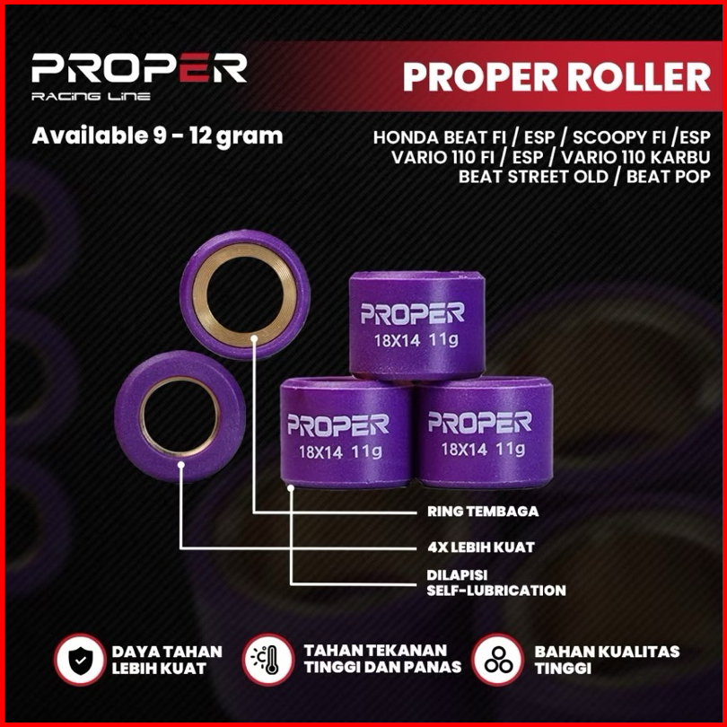 Roller Proper Racing Line Roller 18x14 9-12 Gram Beat Scoopy Fi Esp Vario 110 Fi Esp Vario 110 Karbu Beat Street