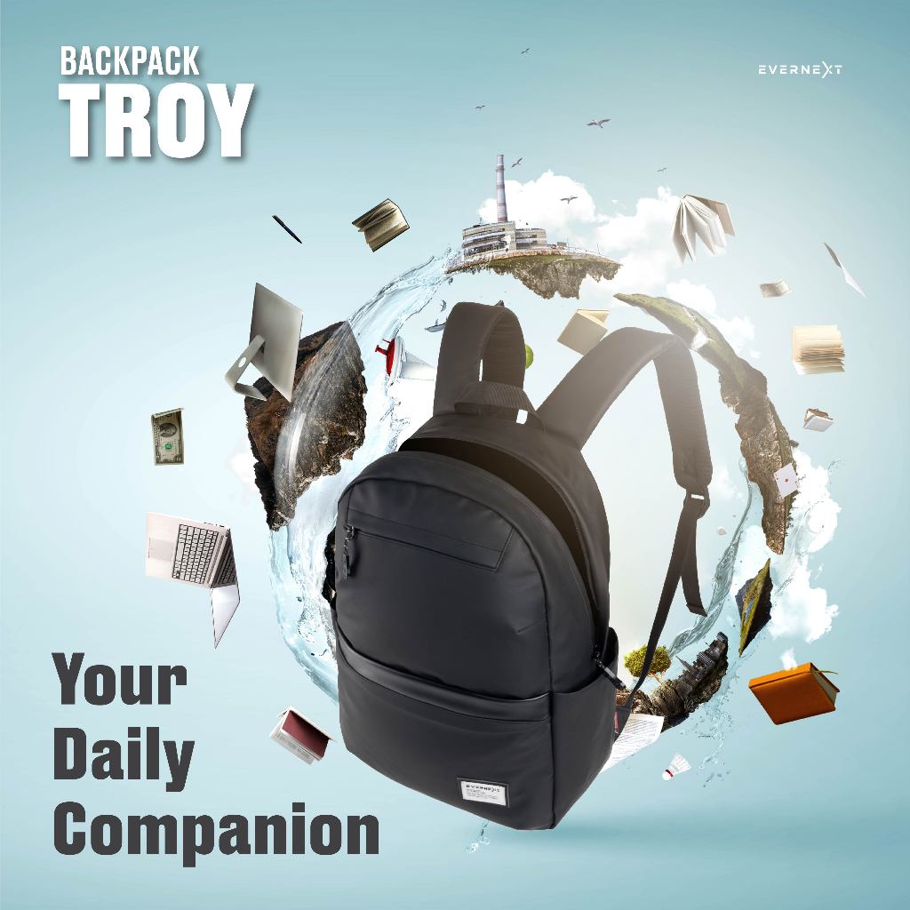 Evernext - Tas Ransel Pria Waterproof Tas Sekolah Pria Wanita Anti Air Backpack Laptop Troy