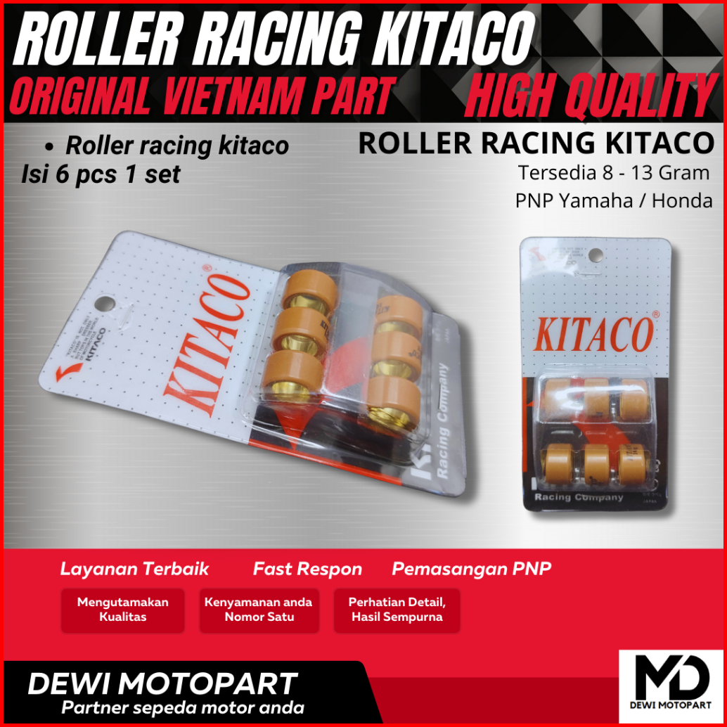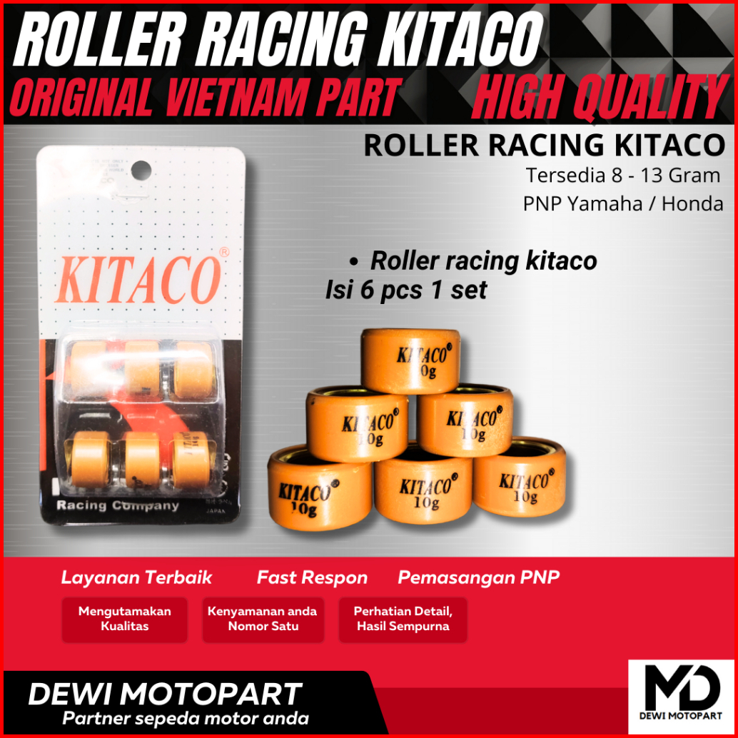 Roller Vario 150 125 Beat Fi Nmax Pcx Adv Aerox Lexi 1 Set 6 Pcs 8-13 Gram Roller Racing Kitaco