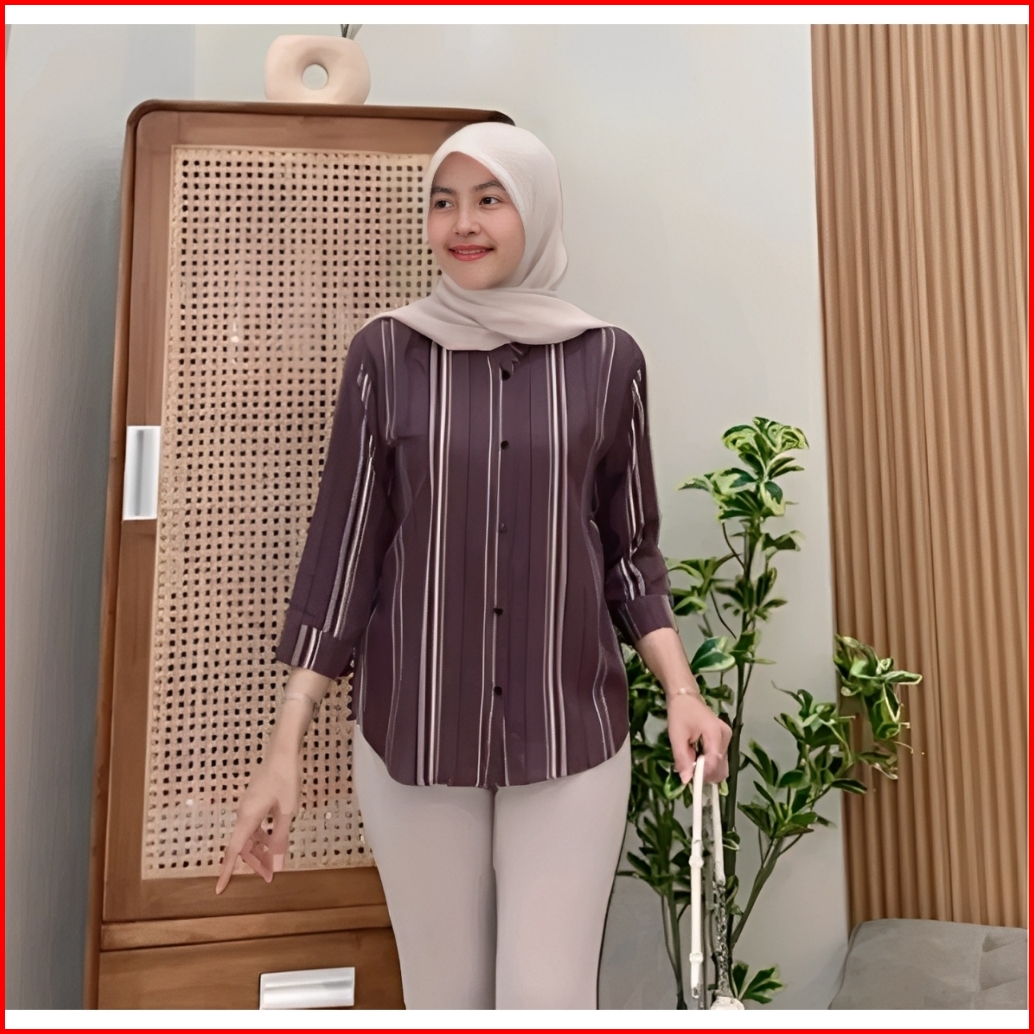 Murah Deal Kemeja Atasan Daily Top Salur Wanita Terviral Warna Soft Desain Elegan Ld 120