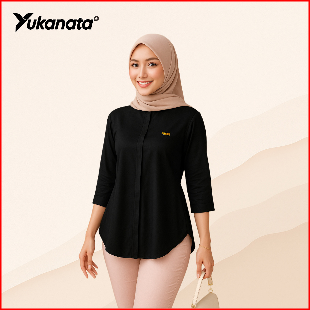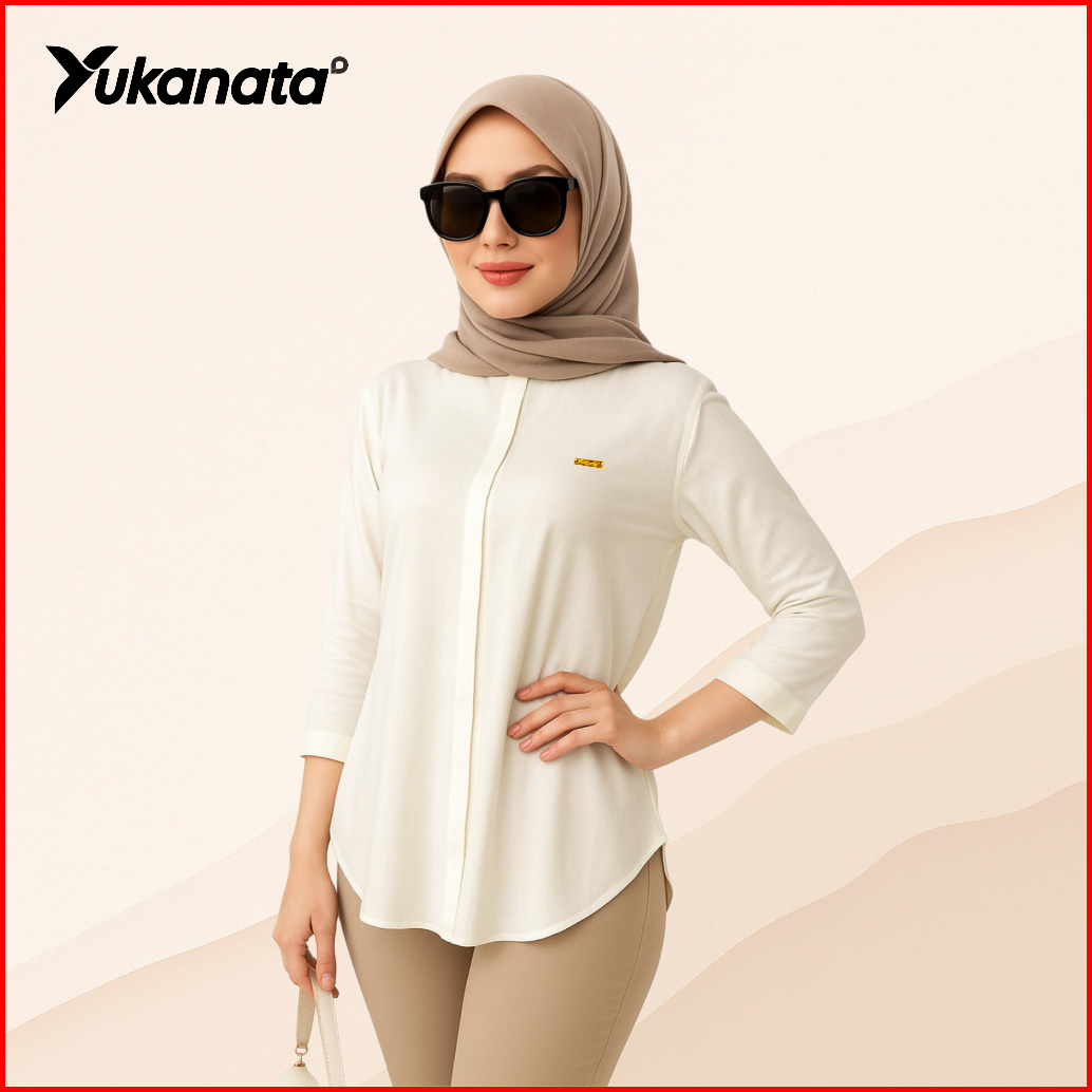 Yukanata.id - Atasan Kemeja Wanita Lengan 3 4 Polos Untuk Kerja Kantor Kasual Matterial Rayon Premium