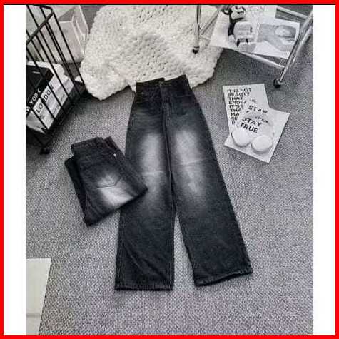 Ab- Celana Cewek Cowok Gombrong Highwaist Losse Baggy Sraight Korean Style Jeans Wisker Gombrong Retro Kulot
