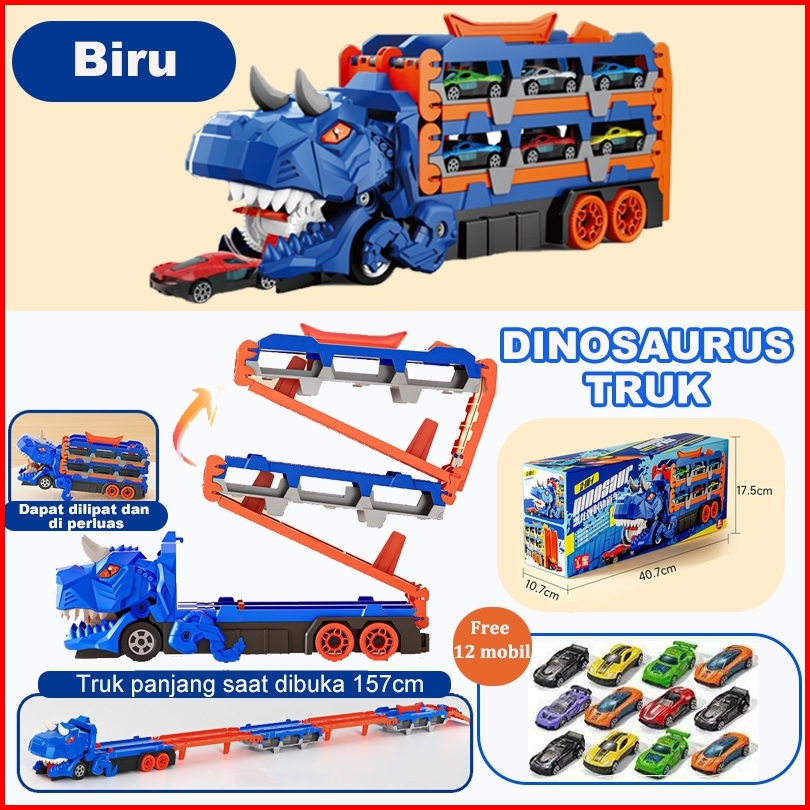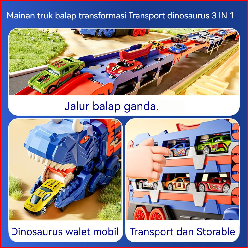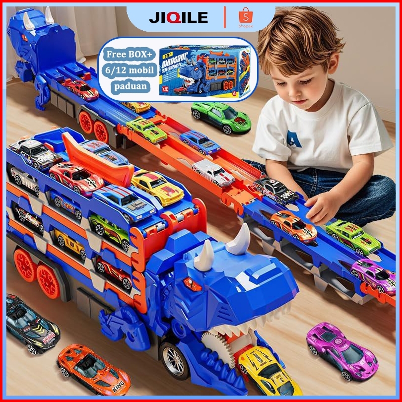 Jiqilefree 6 12 Mobil Carmainan Anak Mobil Dinosaurus Deformed 157cm Racing Dengan Trek Balap Lipat Catapult Deformasi