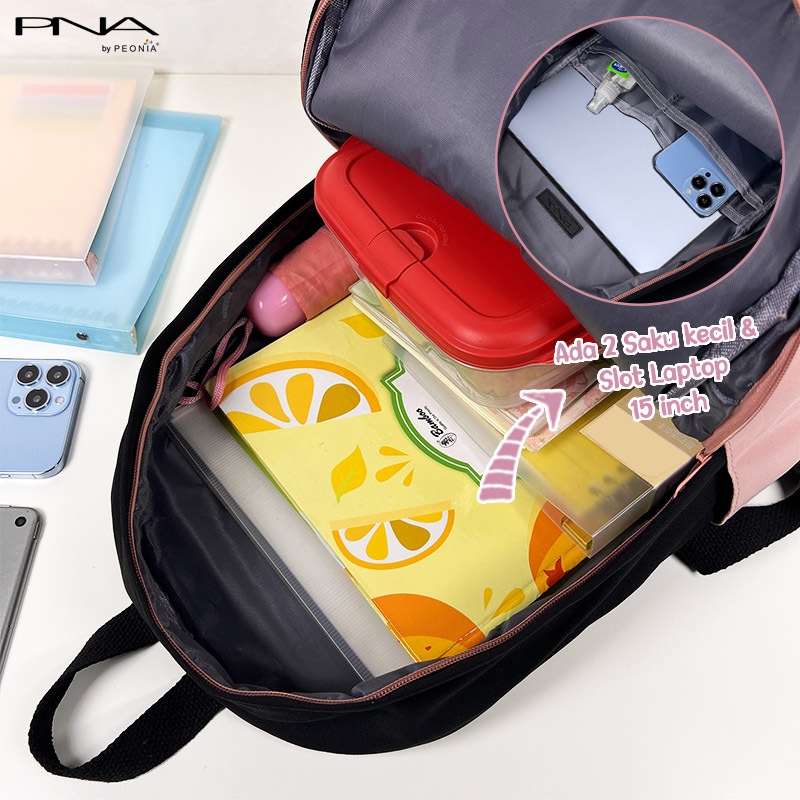 Peonia PNA SOOHEE Water Resistant tas ransel wanita import korea style Extra Besar Wanita Pria Unisex Laptop Backpack Pu