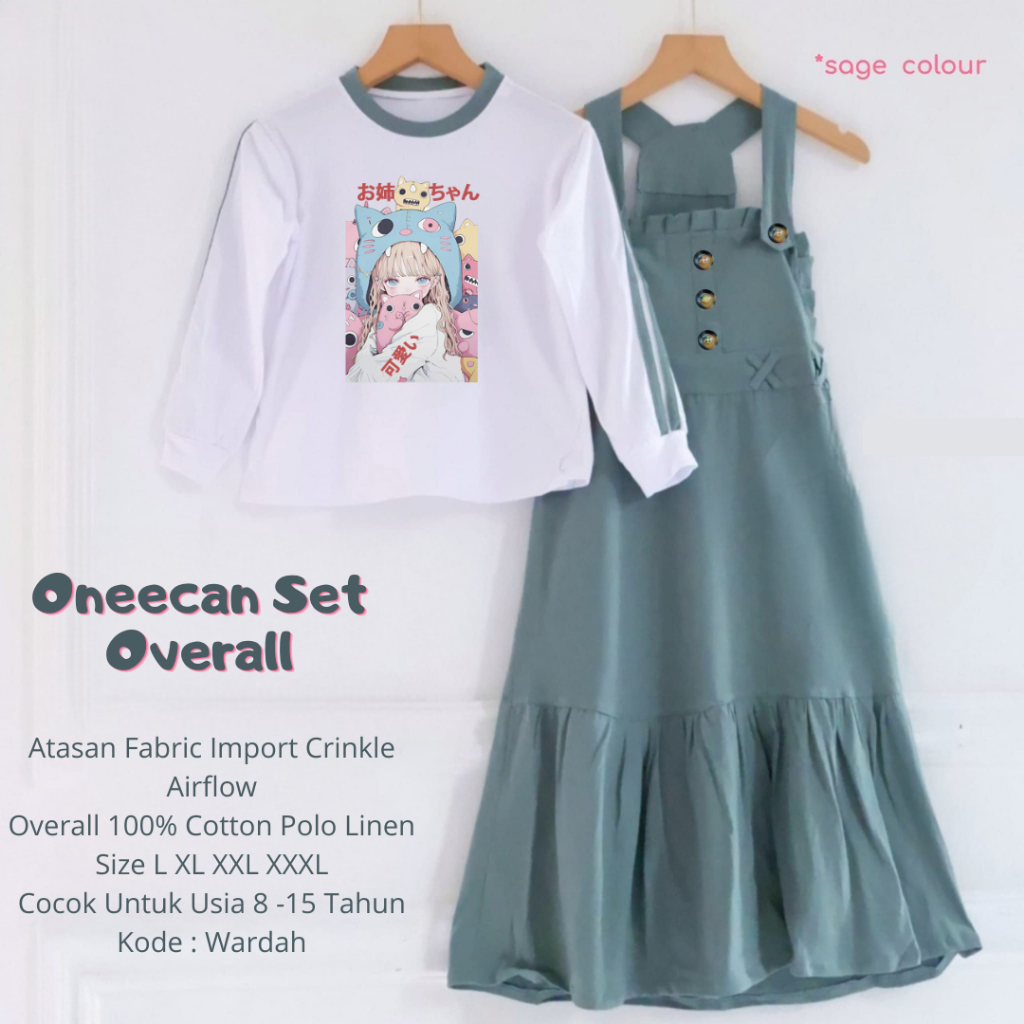 ONEECHAN SET KIDS SETELAN BAJU ANAK CRINKLE LENGAN PANJANG DAN OVERALL LINEN ONESET ANAK USIA 8-15 TAHUN BAJU ANAK REMAJ
