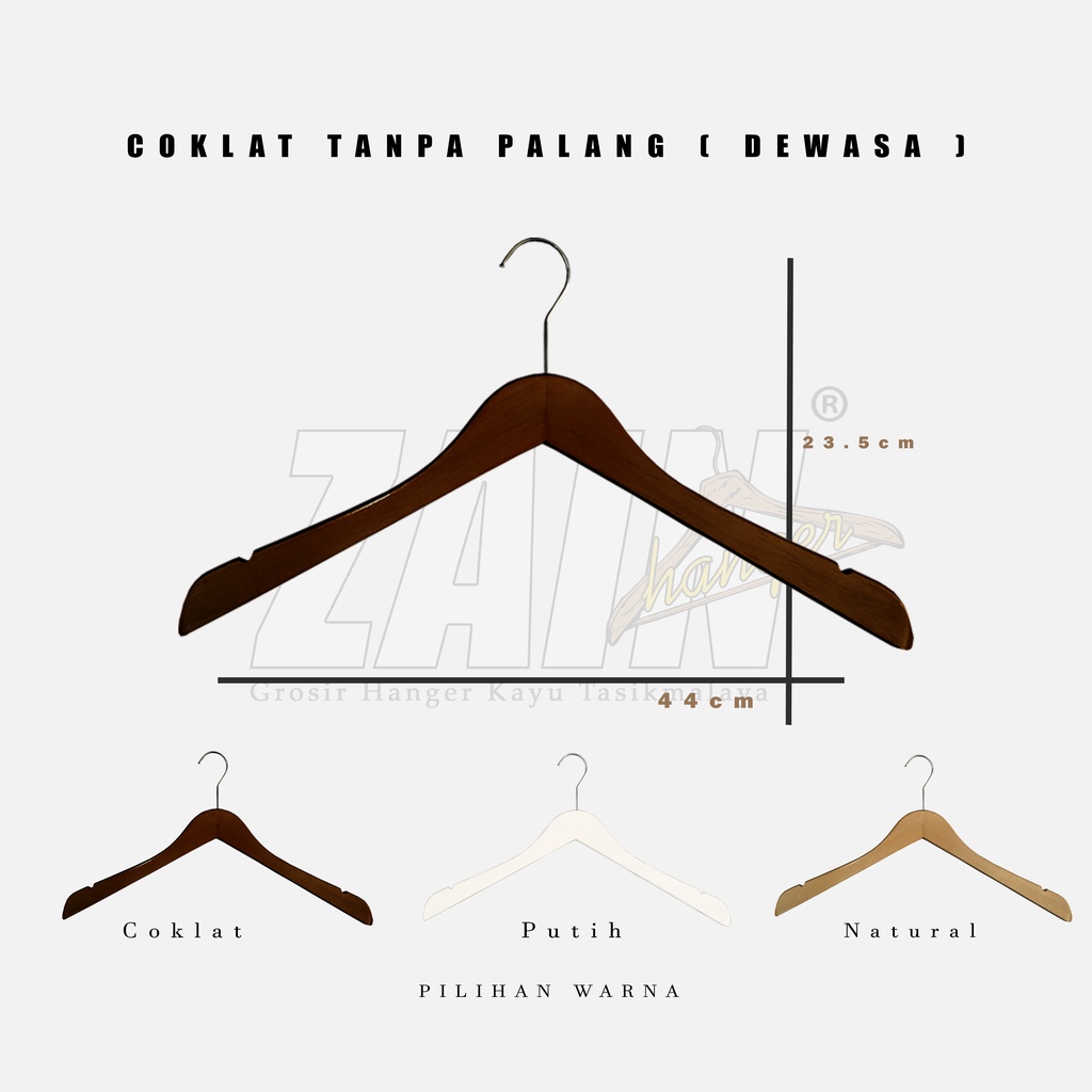 HANGER KAYU BAJU 4ppi + TANPA PALANG & PALANG KAYU + WARNA NATURAL, COKLAT, PUTIH