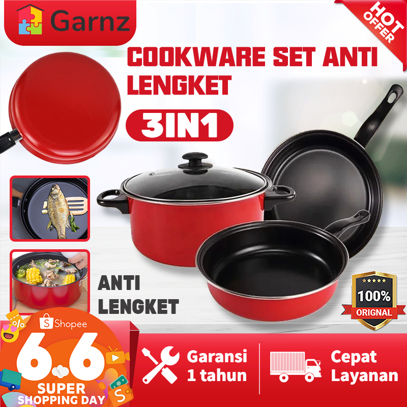 Panci Set 3 IN 1 Anti Lengket Panci Isi 3 Tutup Kaca Panci Set Pot Cookware Set Anti Lengket