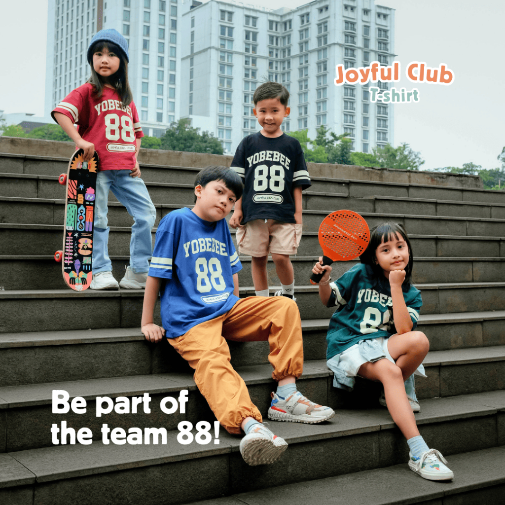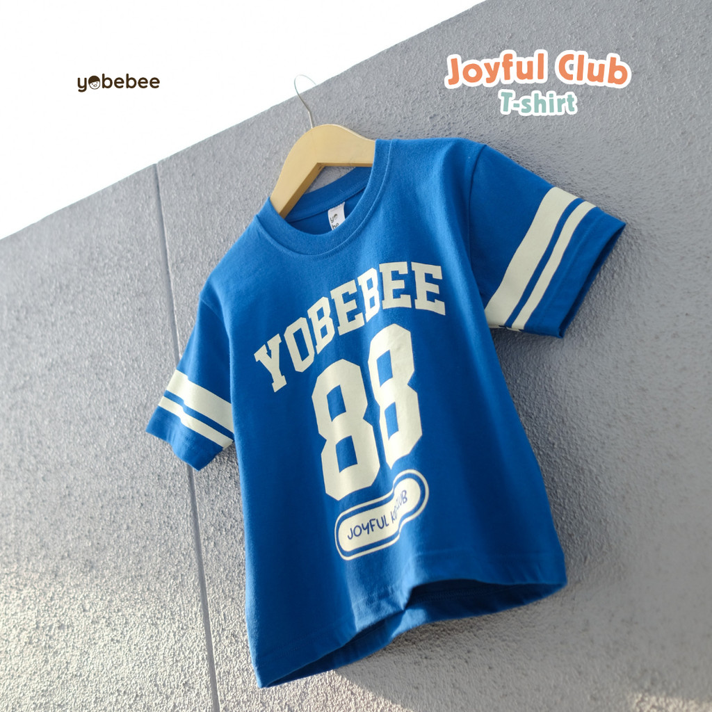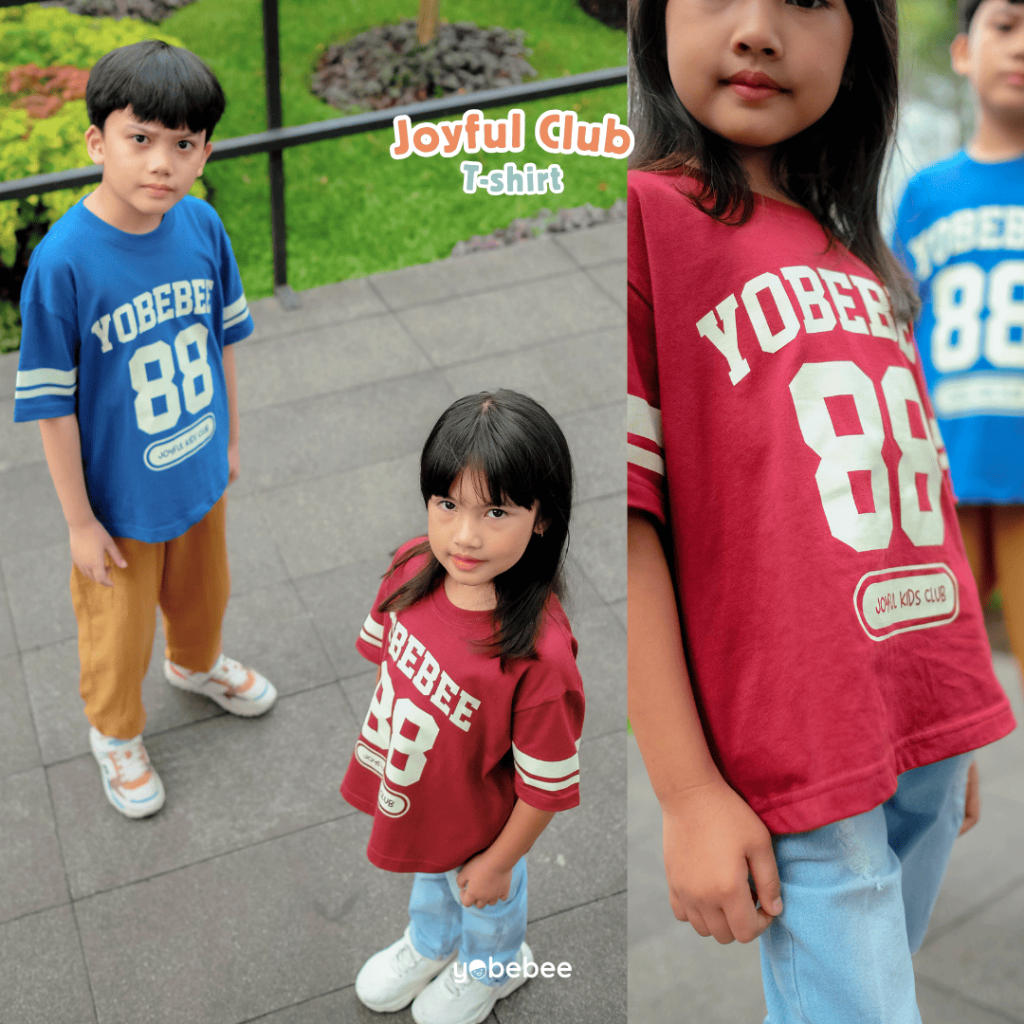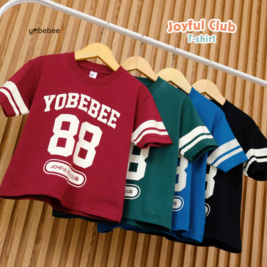 YOBEBEE JOYFUL CLUB T-SHIRT ANAK USIA 3 5 7 9 11 TAHUN KAOS OVERSIZE BASEBALL TEE KIDS ATASAN MODEL TANGAN PENDEK T-SHIRT MODEL CASUAL SANTAI ANAK COWOK
