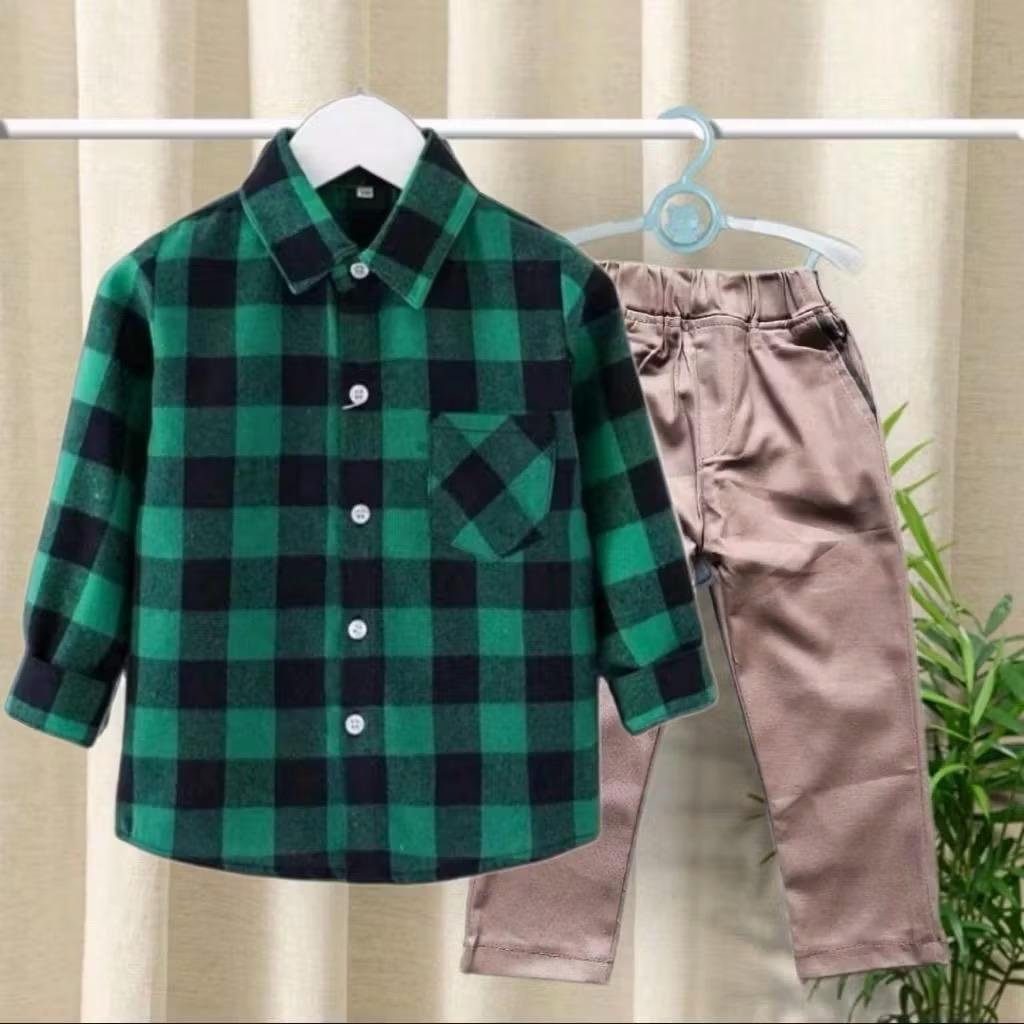 Setelan Kemeja Flanel Anak / Stelan Chinos Panjang Dan Kemeja Flanel Usia 1-10 Tahun
