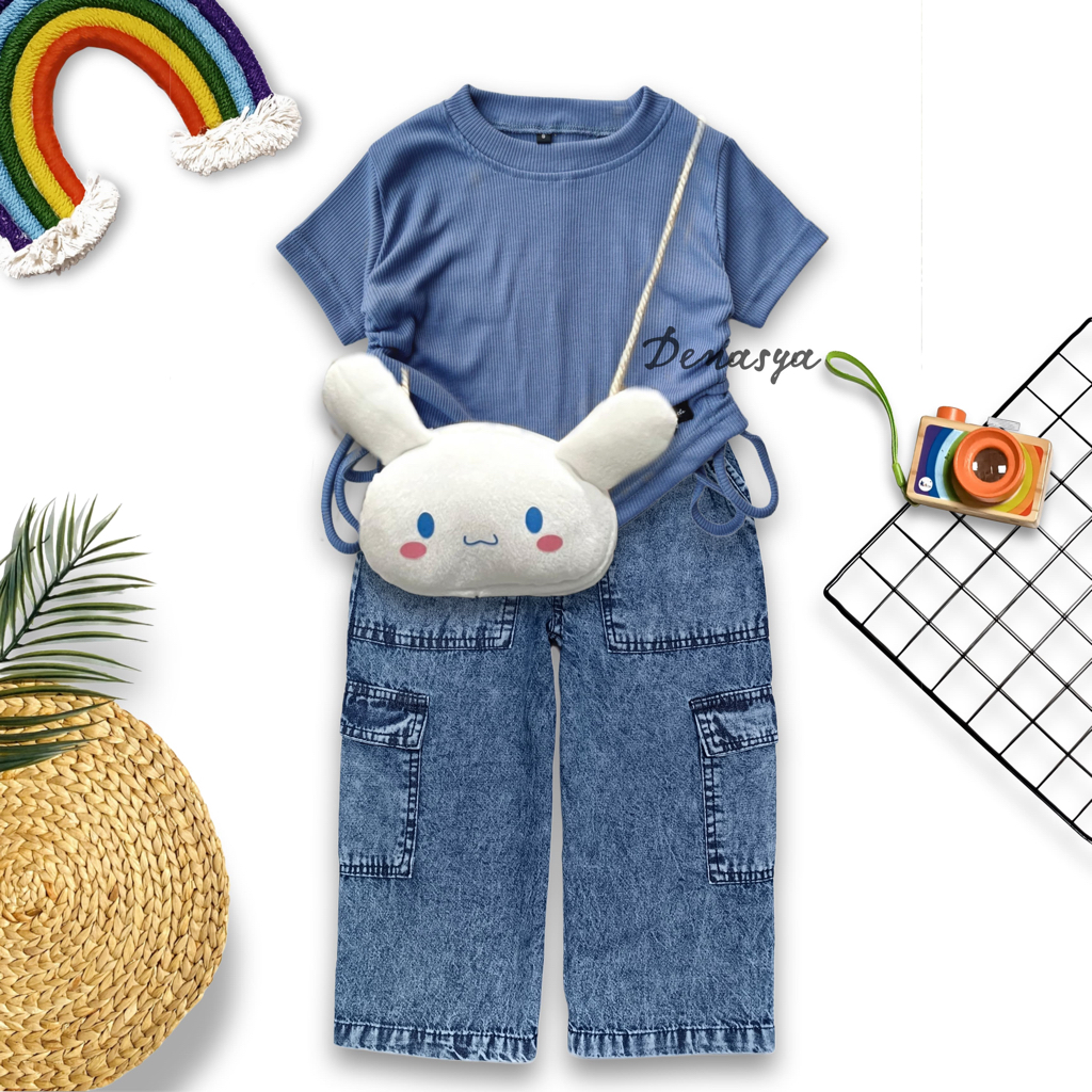 Pakaian Anak Perempuan Kekinian / Setelan Baju Knit dan Kulot Cargo Jeans Snowblue 1-12 Tahun
