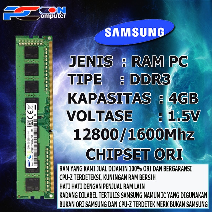 RAM / MEMORY SAMSUNG PC DDR3 4GB 1600MHZ/PC12800