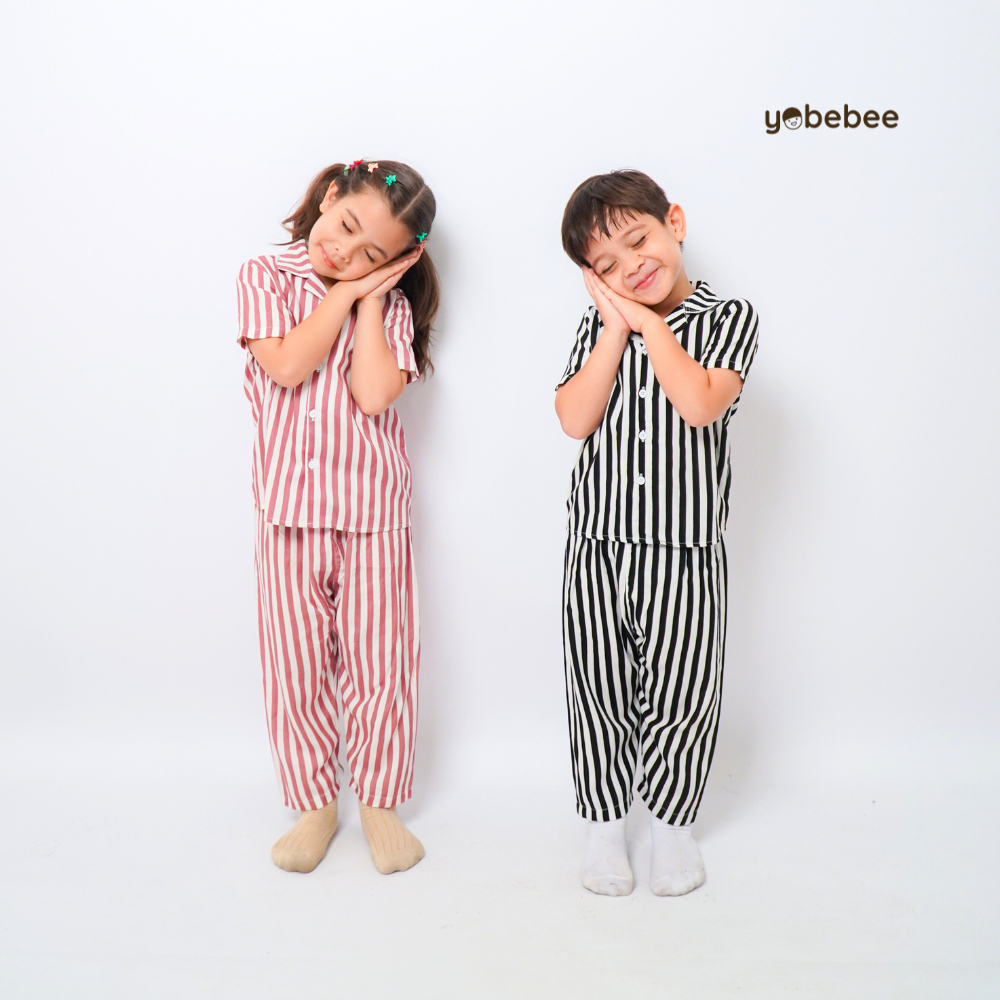 YOBEBEE PAJAMAS STRIPE ANAK USIA 2 3 4 6 8 10 TAHUN ONE SET SETELAN BAJU TIDUR ANAK UNISEX