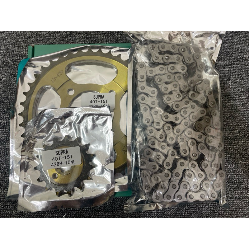 GEAR SET GIR SET PAKET RANTAI KAPPA SUPRA X LAMA SUPRA LAMA SUPRA FIT LAMA KODE KEV 428H 104L ( GEAR DEPAN 15T GEAR BELA