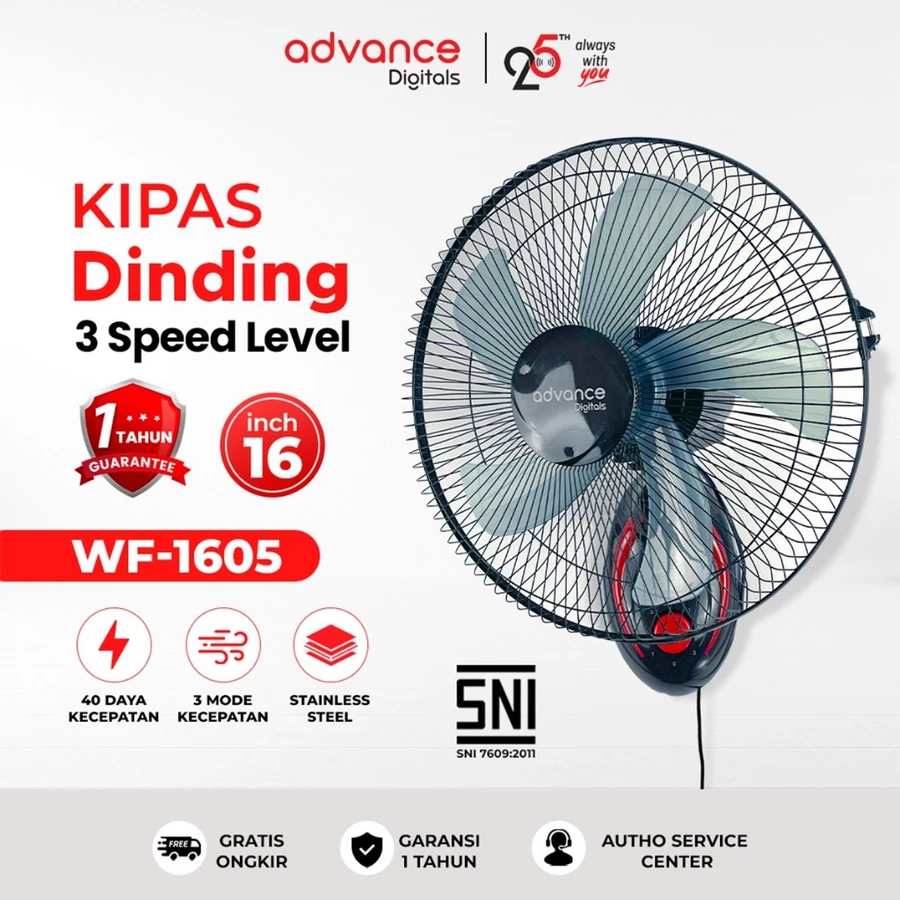 Advance WF-1605 Kipas Angin Dinding Wall Fan Ukuran 16 inch 40 Watt Garansi Resmi 1 Tahun