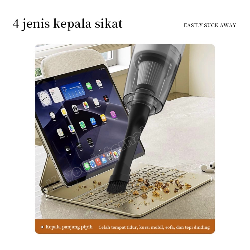 SAERIS Vacuum Portable Nirkabel debu 4-in-1 Berbagai kepala sikat 30000Pa Tahan Basah Filter
