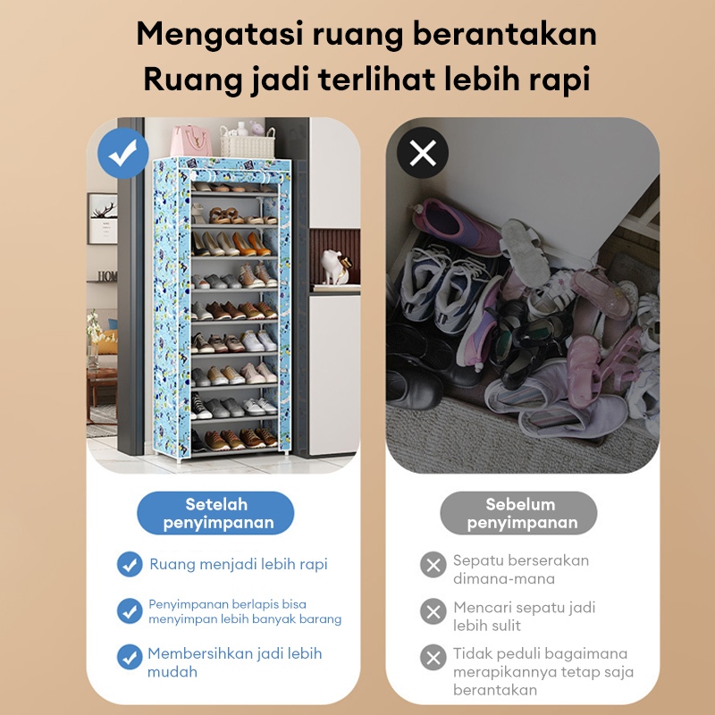 Cottoli Rak Sepatu Kain 10 Susun Rak Sepatu Susun Tertutup Lemari Sepatu Cover Debu Shoe Rack