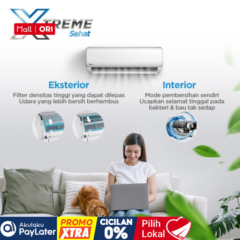 [Mall] AC 1 2 PK AC SETENGAH PK KHUSUS INSTANT Midea MSFCE 05 CRN2 X. R32 AC 1/2 PK Low Watt. Baru & Bergaransi