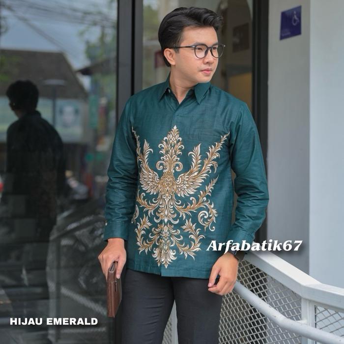AMBARAWA HIJAU EMERALD Kemeja batik pria lengan panjang katun prima premium lapis furing hero