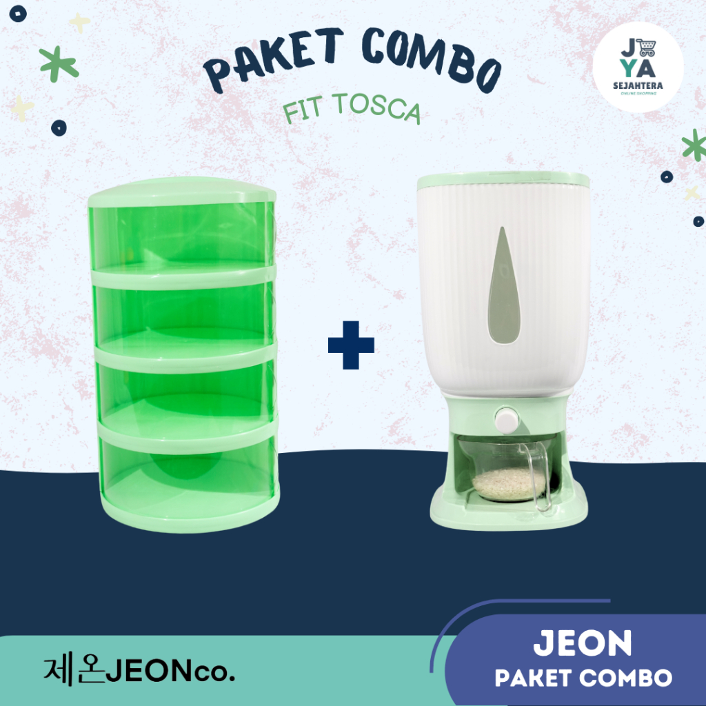 PAKET COMBO FIT Tudung Saji FIT 4 Susun (PERLU DIRAKIT) Lebih Tebal Food Grade dan aman + Dispenser Beras Modern Tempat