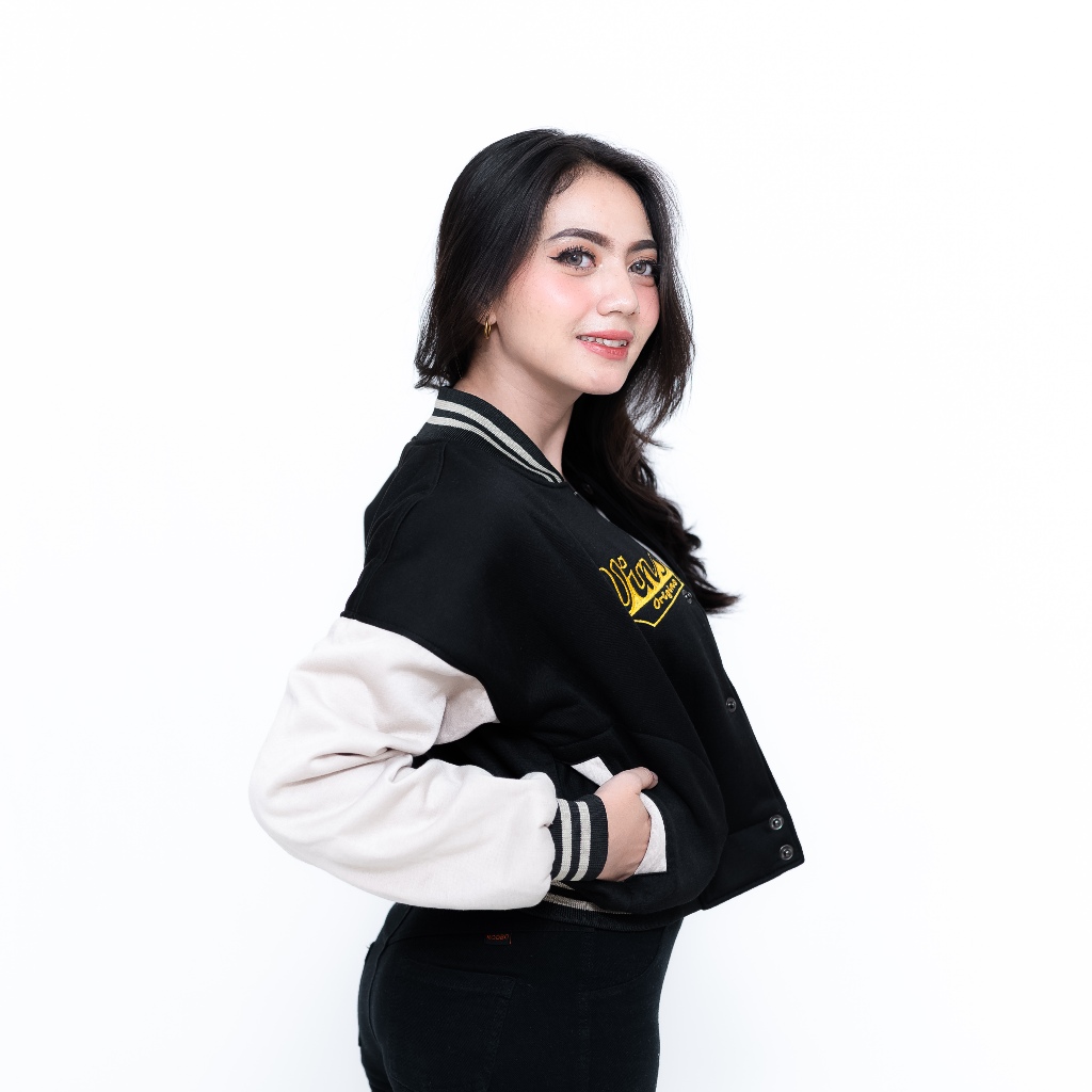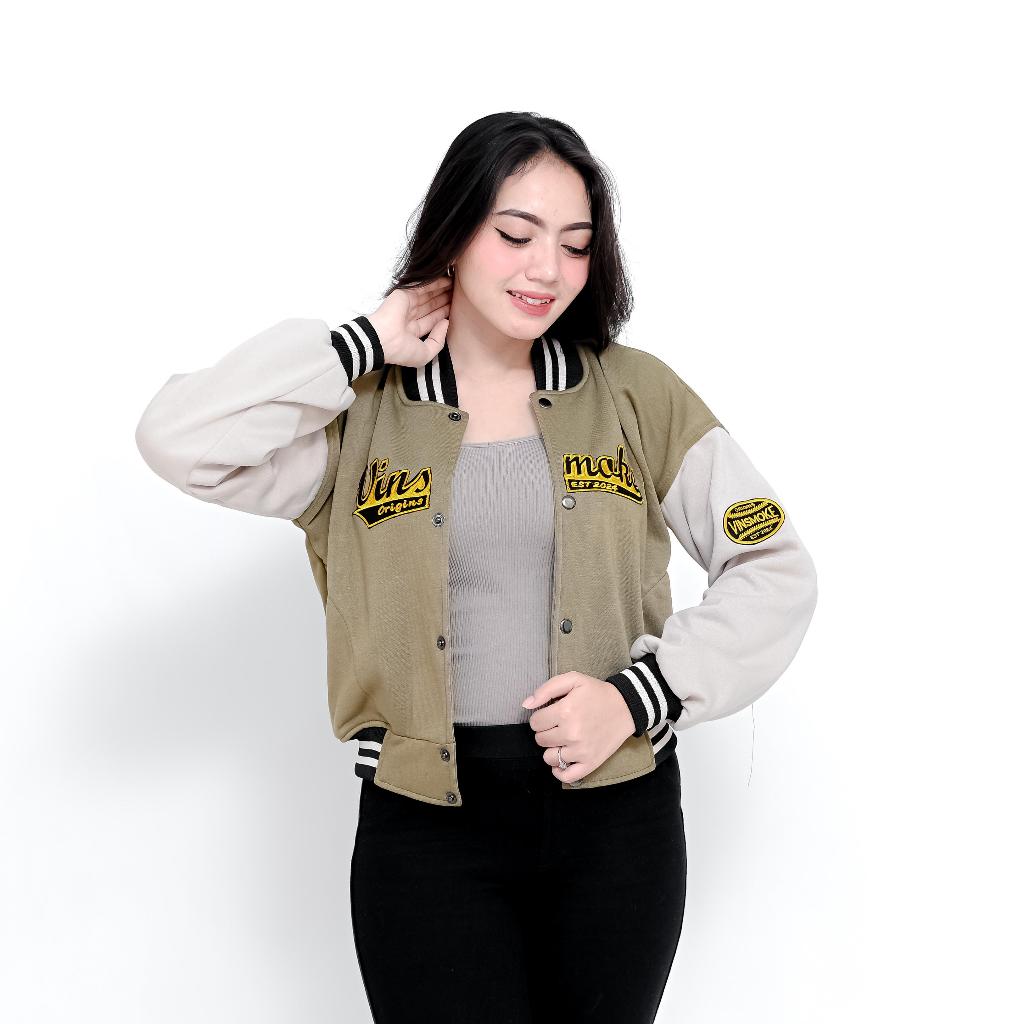 VINSMOKE Varsity Crop/Jaket Varsity Baseball Crop Wanita Full Bordir Aplikasi Premium Size M L XL XXL Terbaru 2024