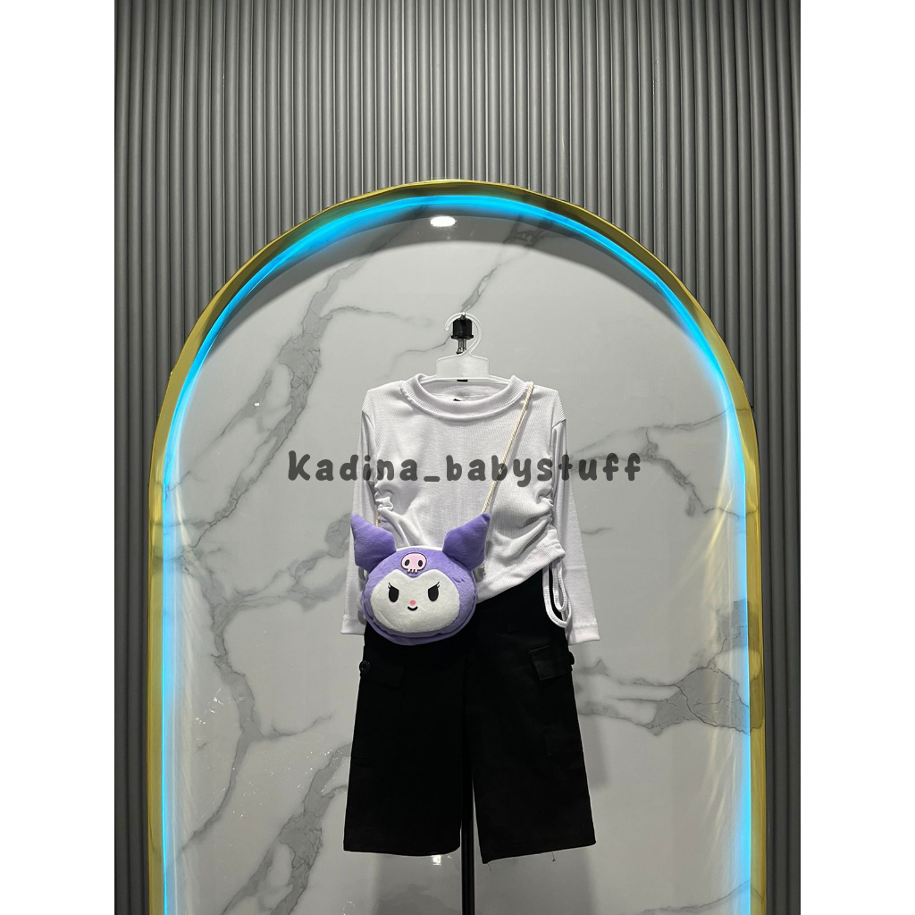 Setelan kaos crop serut rib knit anak perempuan (gratis boneka) / celana kulot cargo anak 2-12 tahun / set ootd anak cew