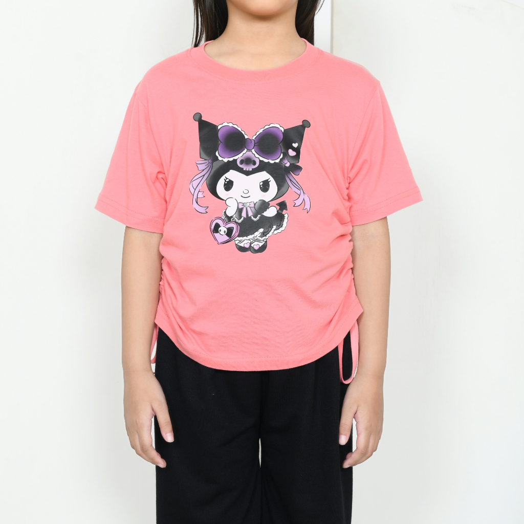 Setelan Kaos Serut Crop Top dan Celana Kargo Anak Perempuan Kekinian Kuromi Cinnamorol Sanrio