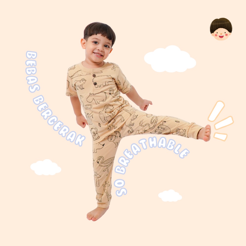 YOBEBEE PRINT SUIT SETELAN BAJU TIDUR BAYI DAN ANAK USIA 2 3 4 6 8 TAHUN ONE SET PIYAMA KIDS KAOS MOTIF KARAKTER BAJU HARIAN SANTAI ANAK