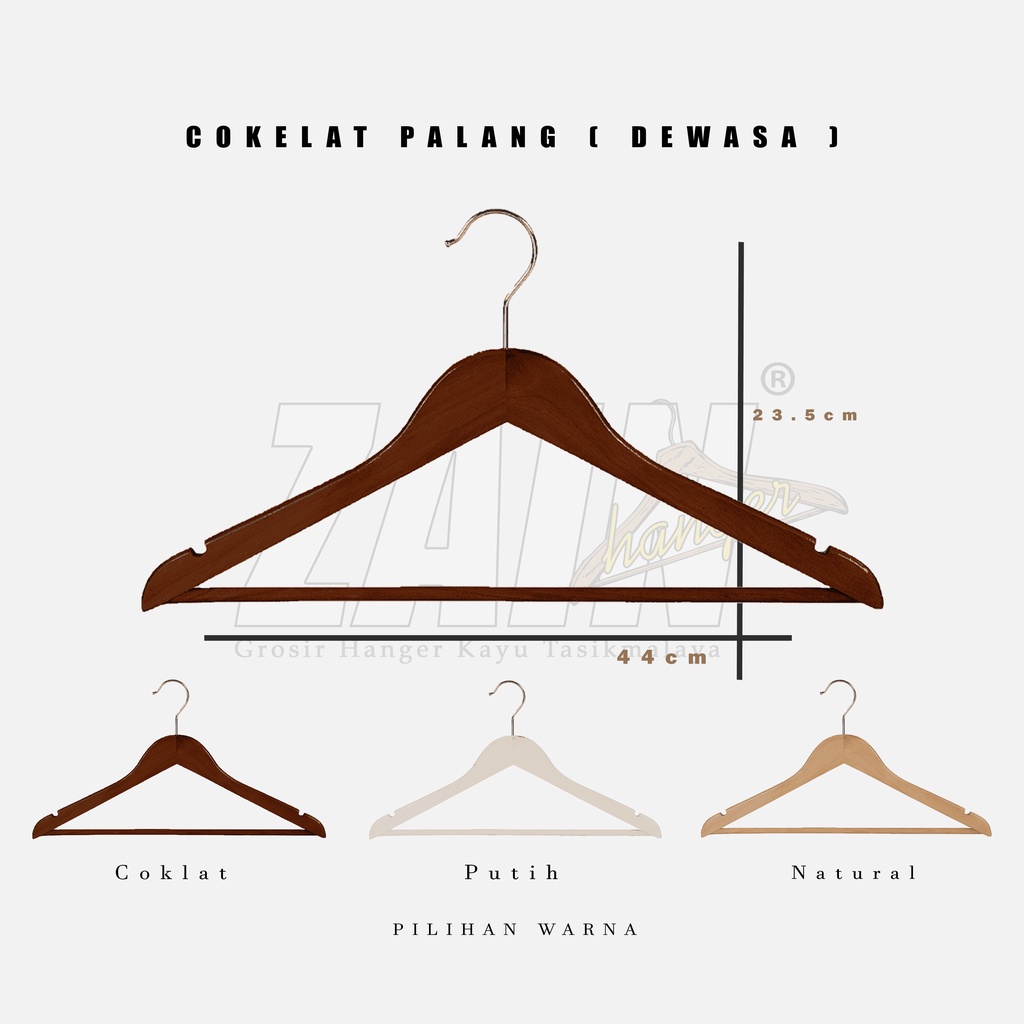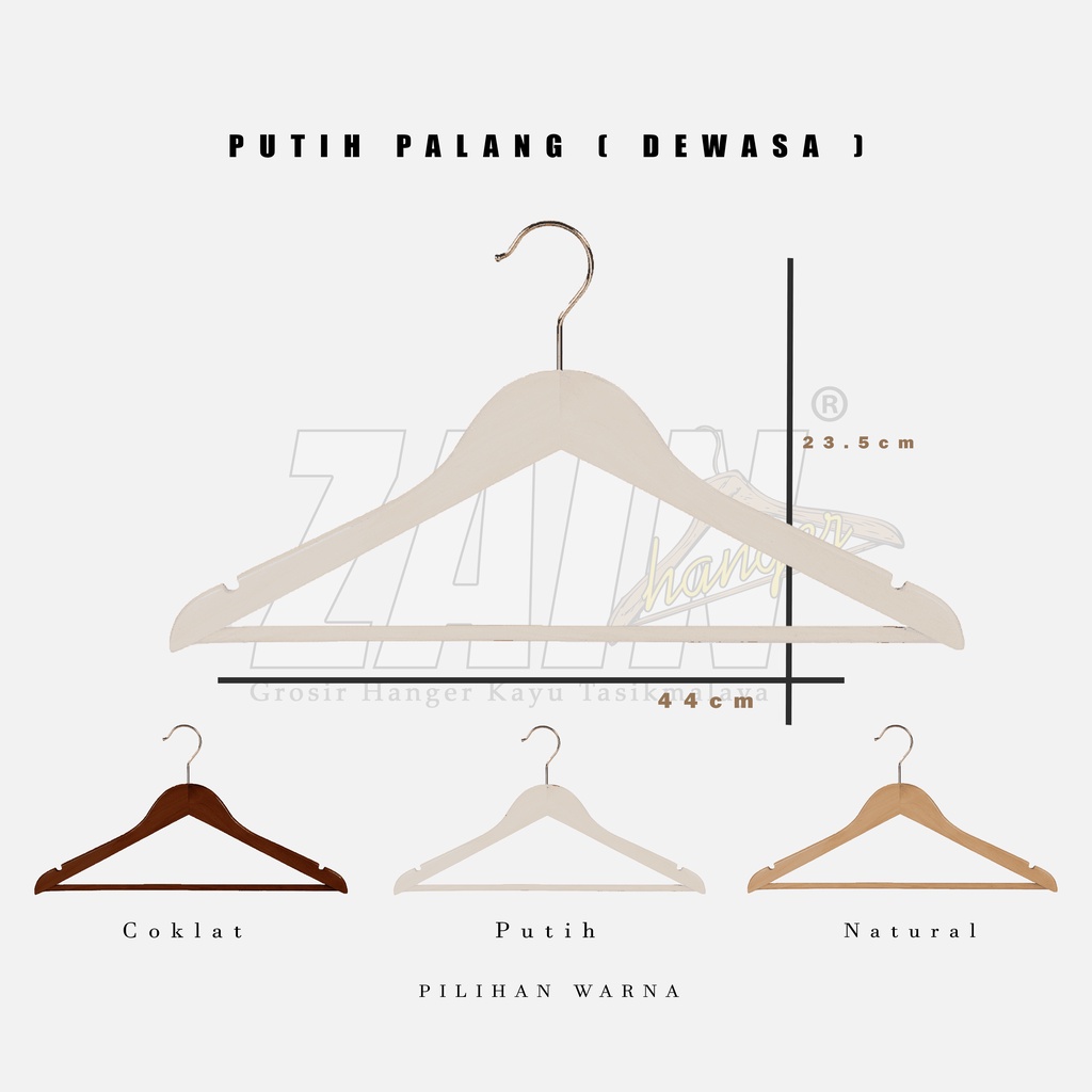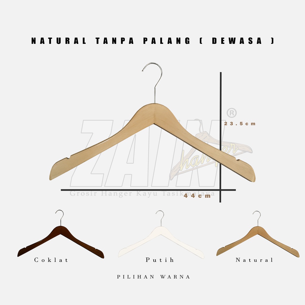 HANGER KAYU BAJU 4ppi + TANPA PALANG & PALANG KAYU + WARNA NATURAL, COKLAT, PUTIH