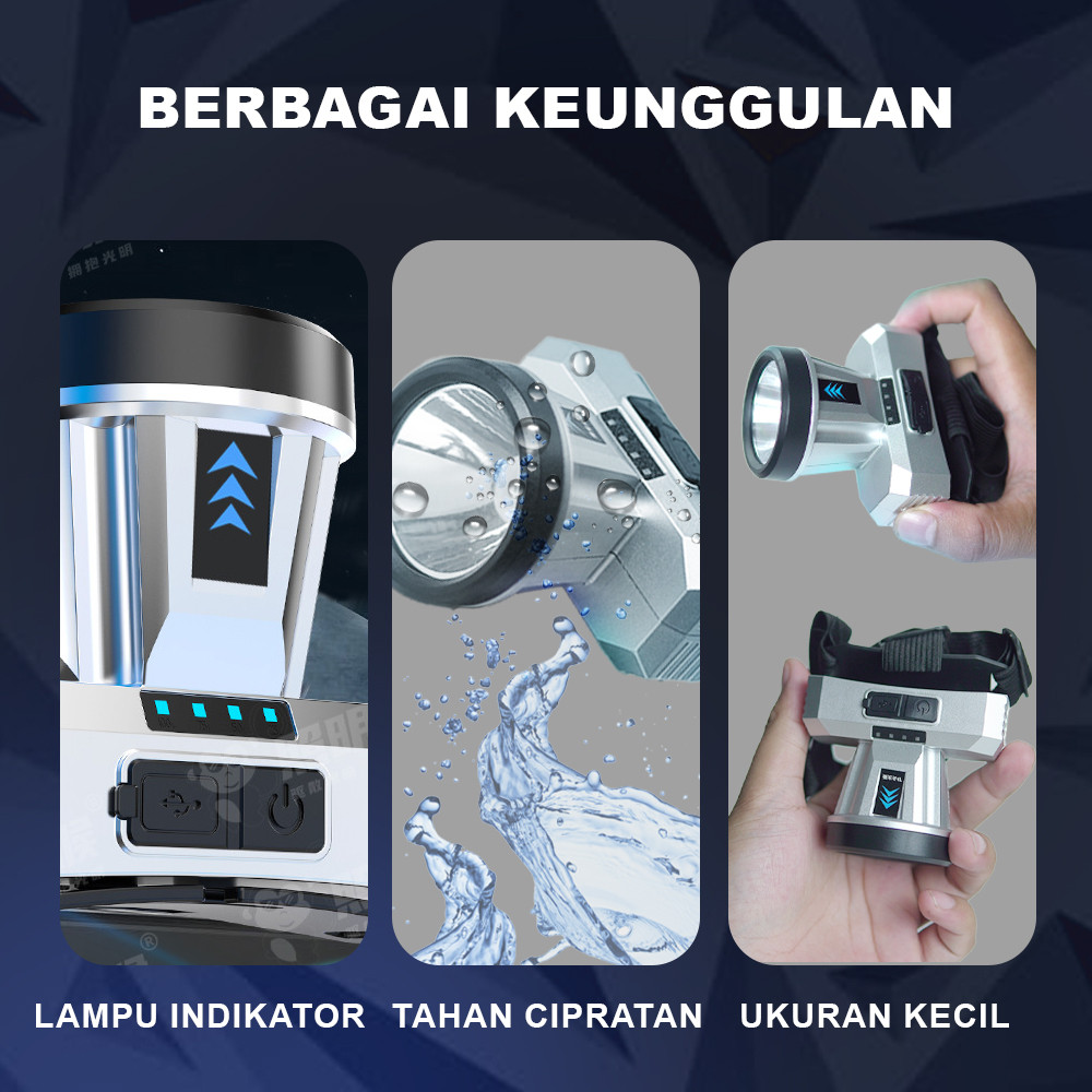 Suksestech Senter Cas Kepala LED Headlamp Mini 3 Mode Waterproof Rechargeable ST 102