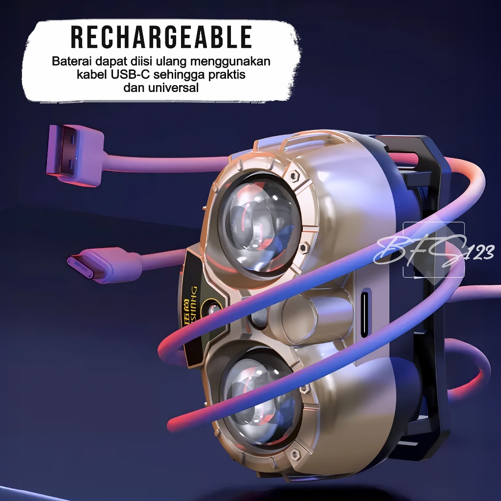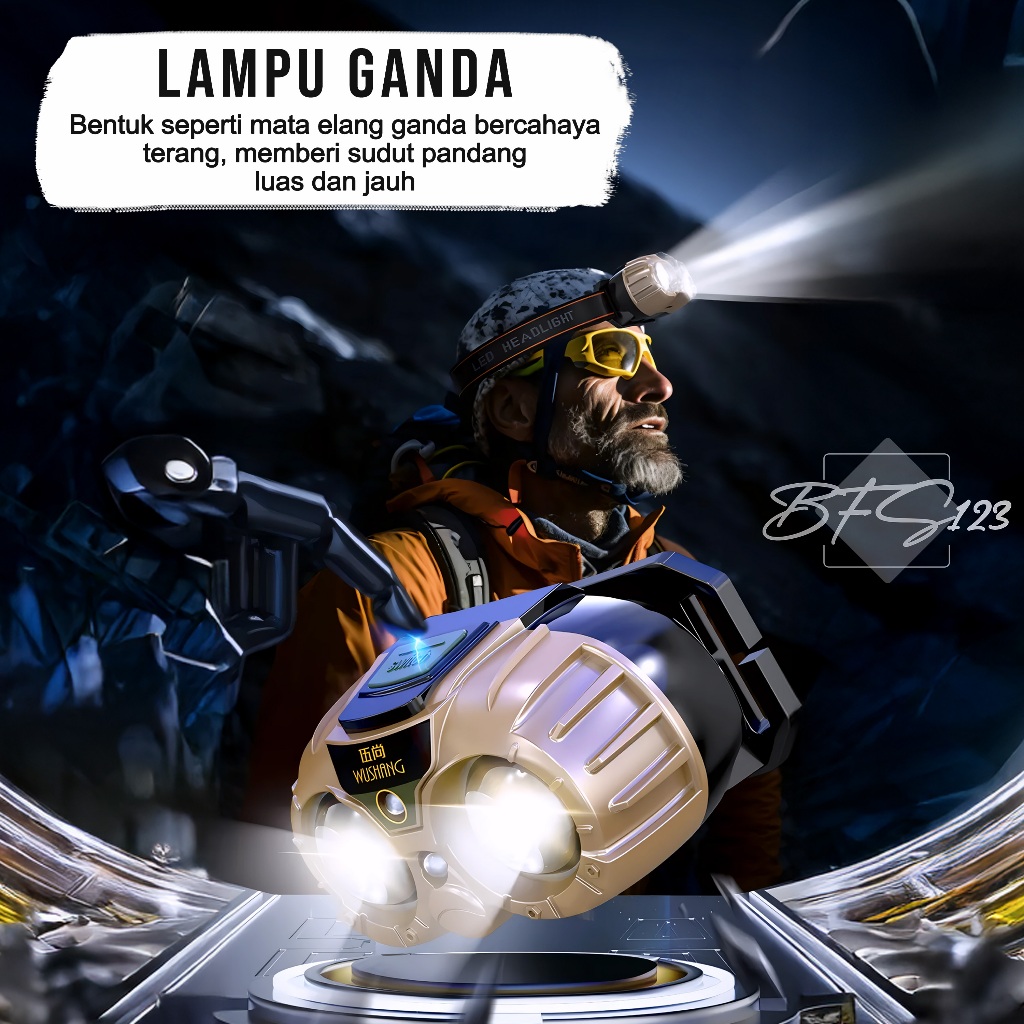 Lampu Senter Kepala Wushang 8619A Sensor Gerak 3 Mode 1200 mAh Headlamp Waterproof USB Type-C