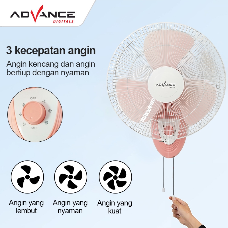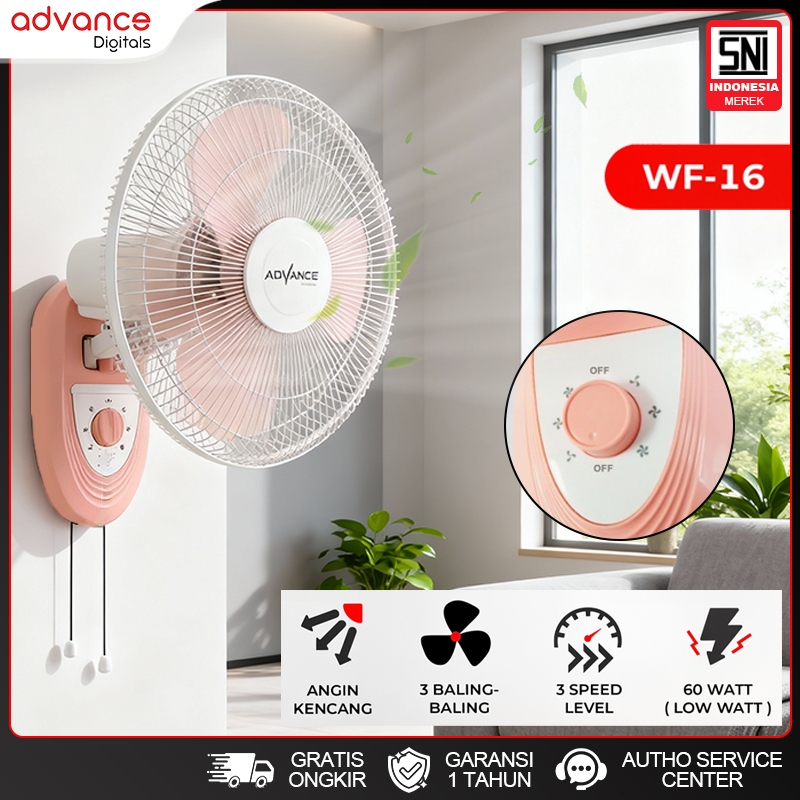 Advance kipas angin dinding 16 inch WF-16 Hembusan Angin Kencang kipas angin tembok Kipas Low Watt 60W Wall Fan Hemat Li