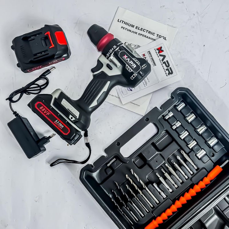 PROMO TERBAIK APR bor brushless AP24+ driver 10mm keyless auto lock fullset accecoris mesin bor cordless 2 baterai lxt 8