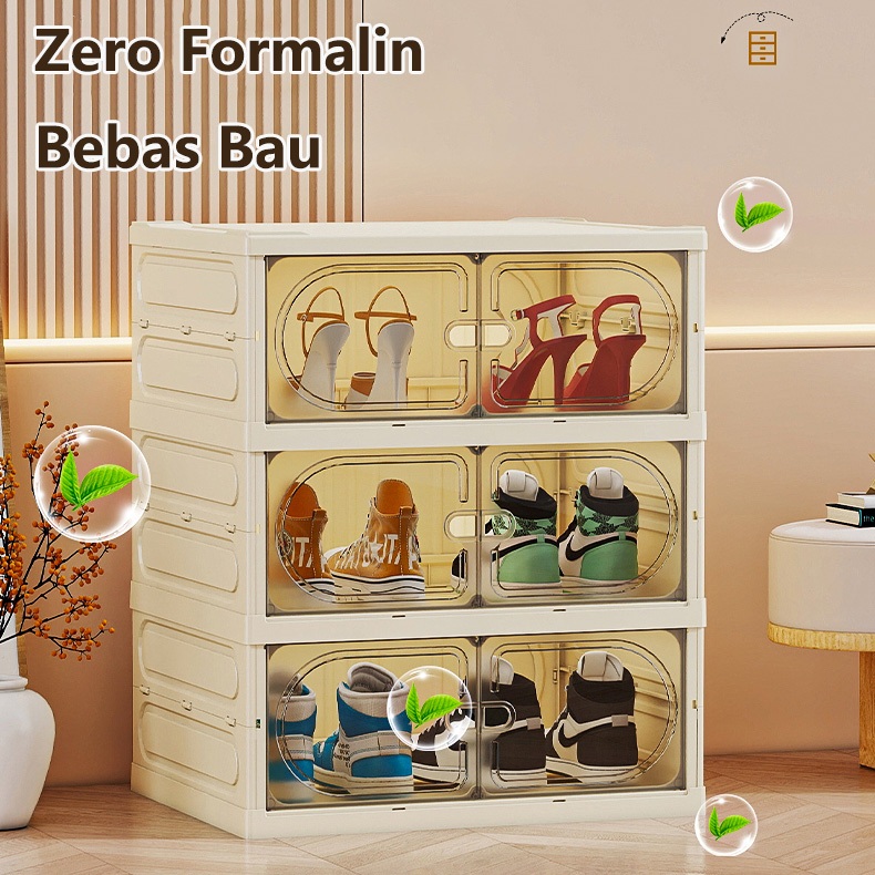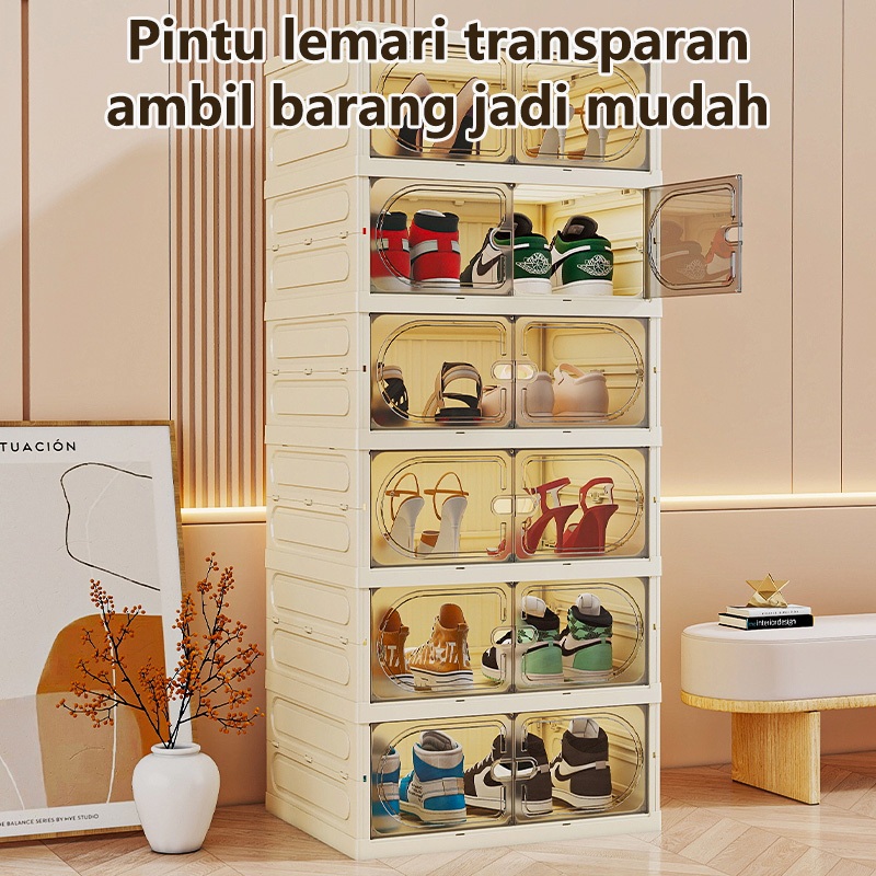 RAPIHOME Rak Sepatu Tertutup Anti Debu Rak Sepatu Aesthetic Transparent Lemari Sepatu 45CM Besar