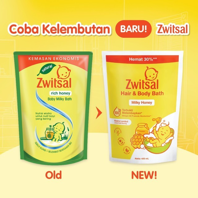 Zwitsal Baby Bath Hair & Body Milky Honey 400mL