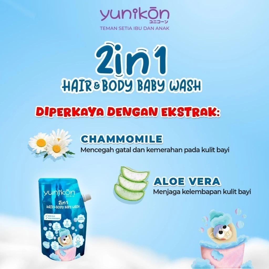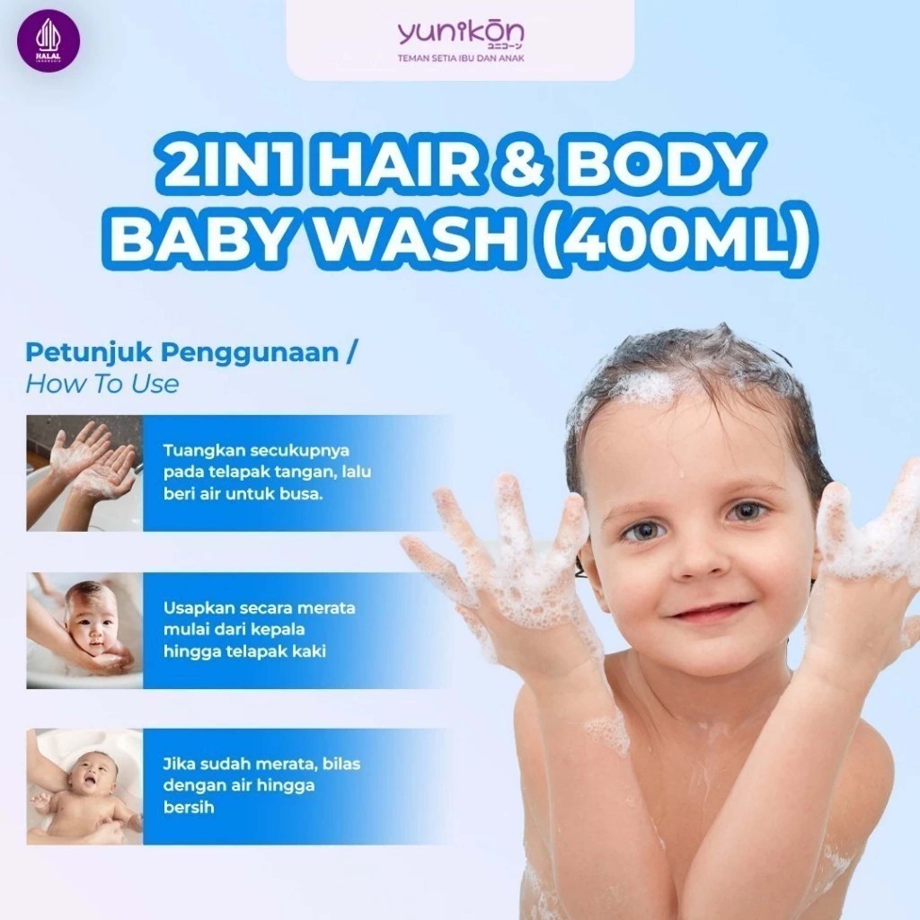 [PAKET 3PCS] YUNIKON 2in1 Hair & Body Baby Wash 400ml - Sabun dan Shampoo Anak Ramah Kulit Sensitif