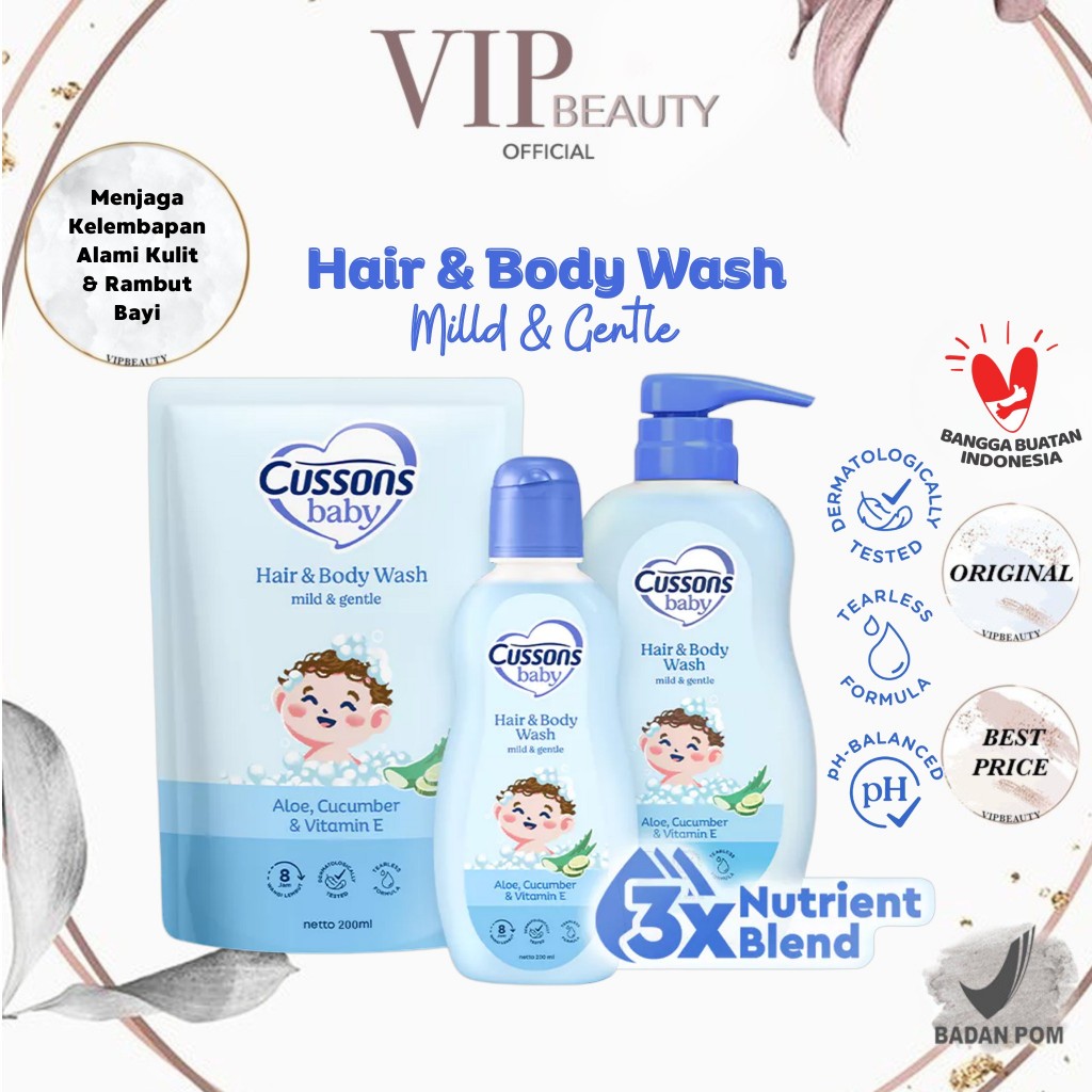 CUSSONS Baby Hair & Body Wash Mild & Gentle Botol | Pouch Refill - Sabun Shampoo Bayi 2in1