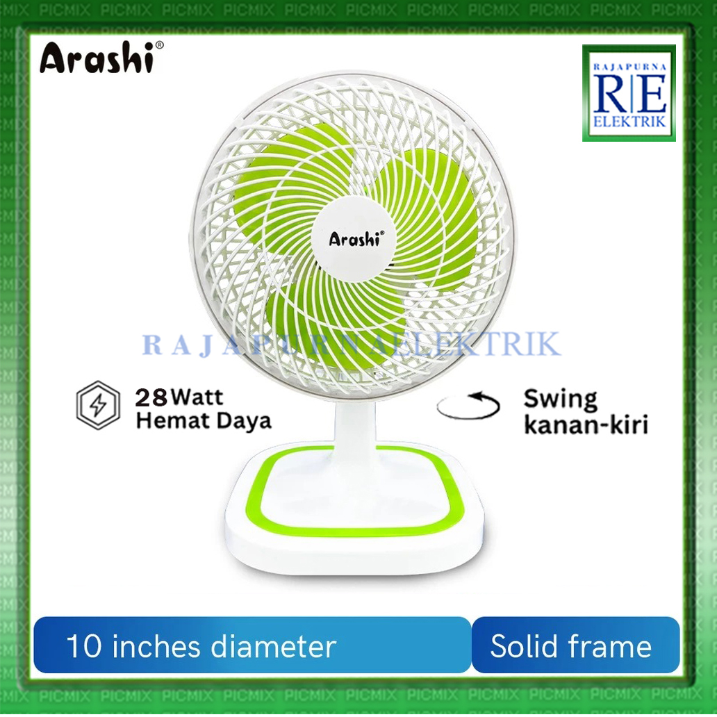 Kipas Angin Meja Desk Fan 10 Inch Bisa Putar Kiri Kanan ARASHI General