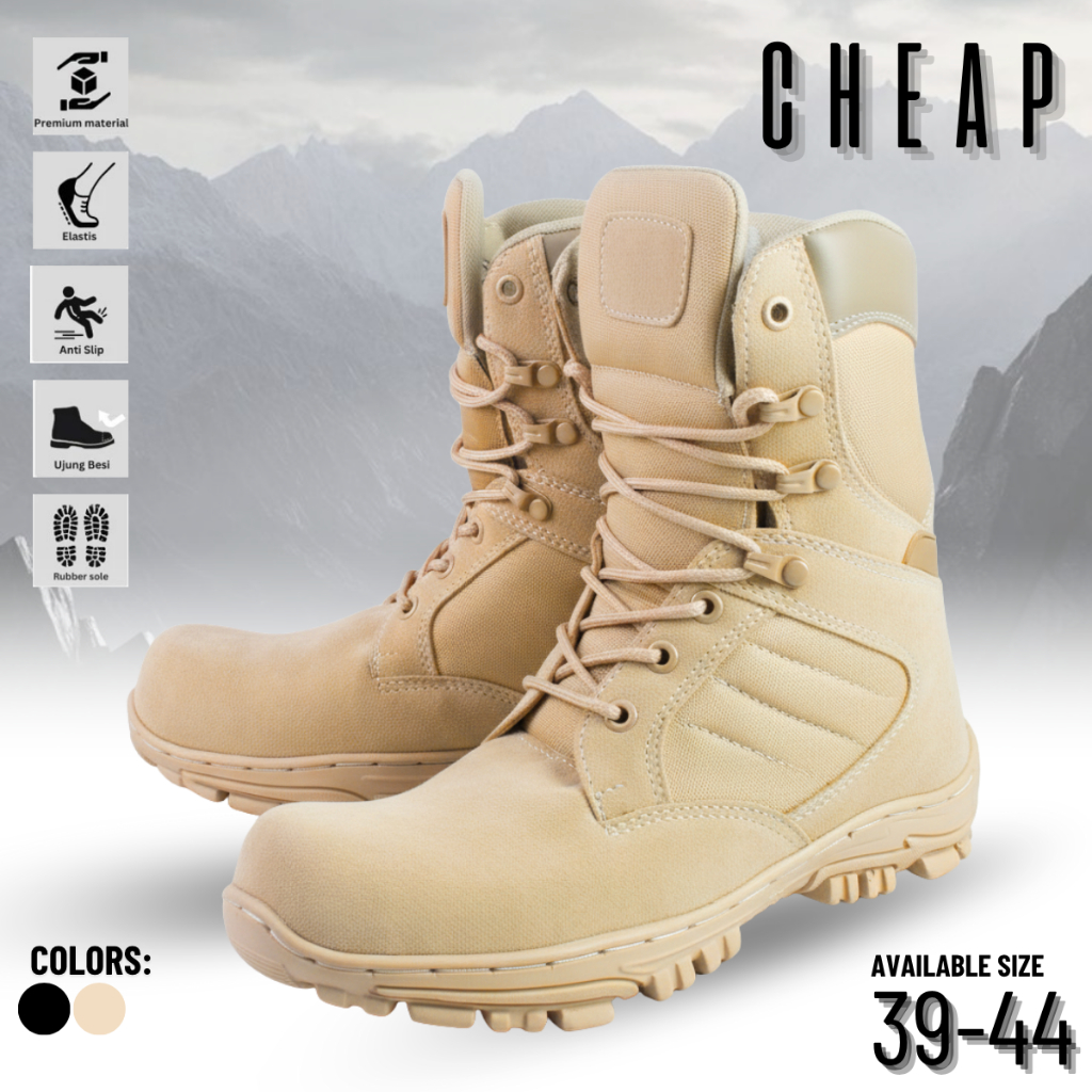 Sepatu Delta Tactical Sepatu Safety Ujung Besi Sepatu ung Outdoor 6inc 8inc Hitam Cream Ukuran 39-44