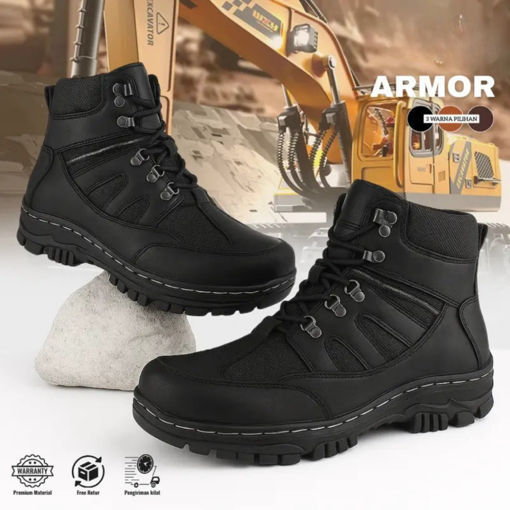 SEPATU SAFETY BOOTS PRIA ARMOR UJUNG BESI/SEPATU KERJA/SEPATU SAFETY BISA BAYAR DI TEMPAT